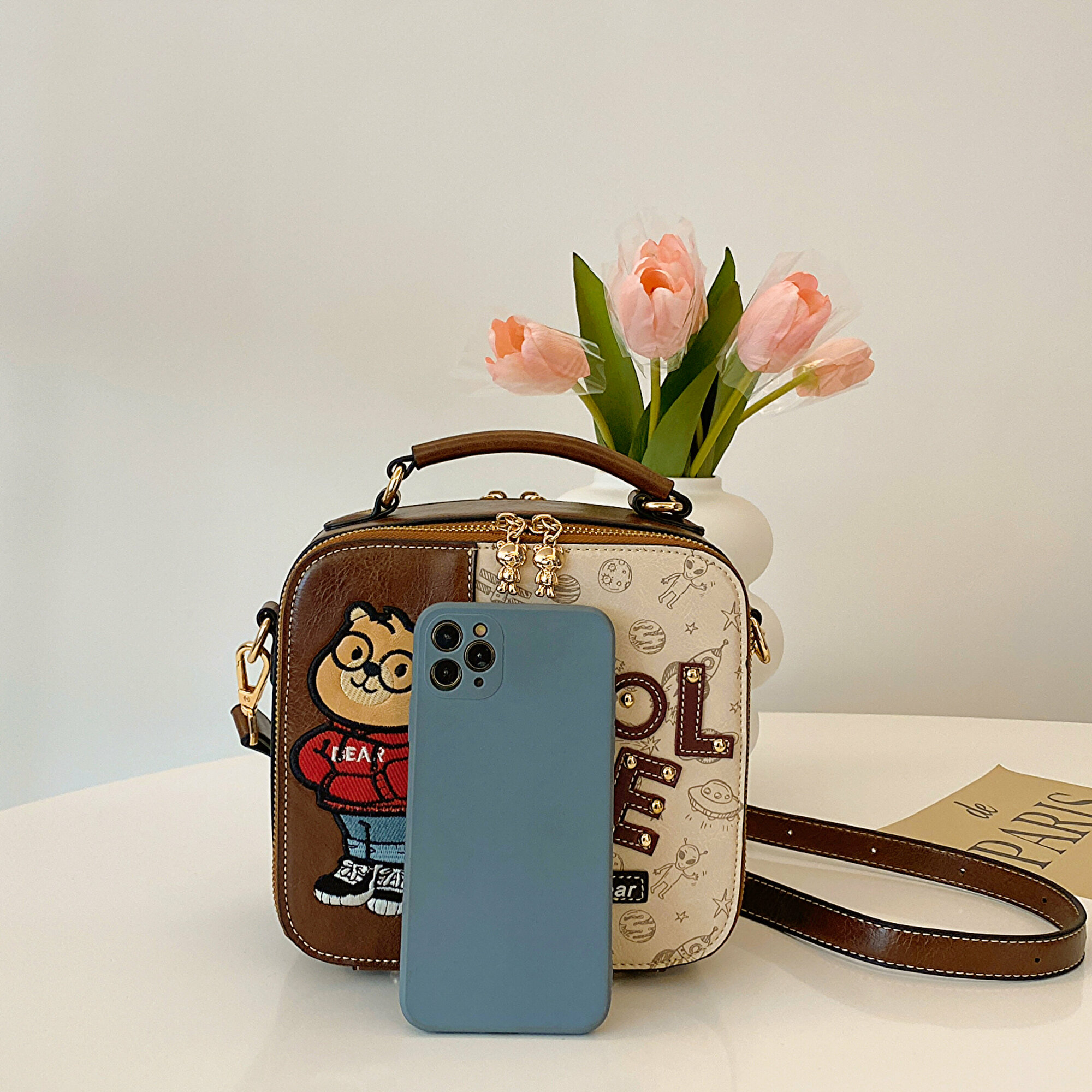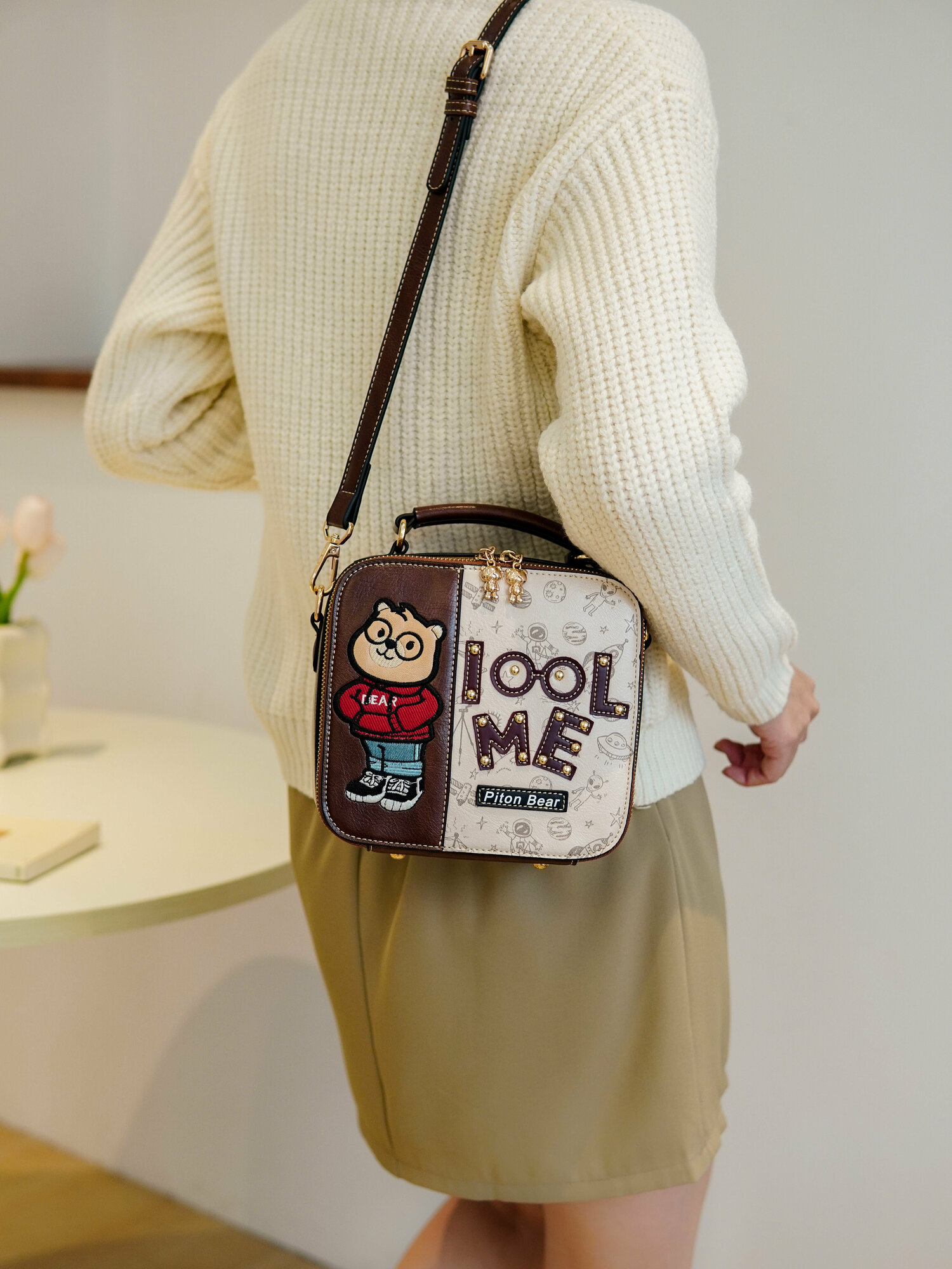 Сумка кросс-боди BeiBaoBao, фактура гладкая, кофейный интересное: