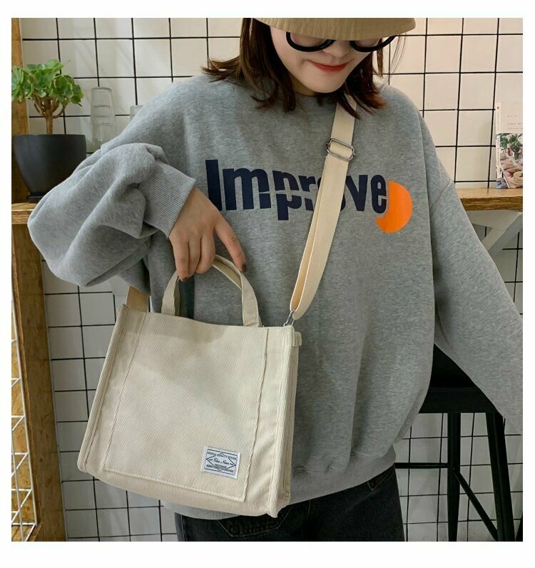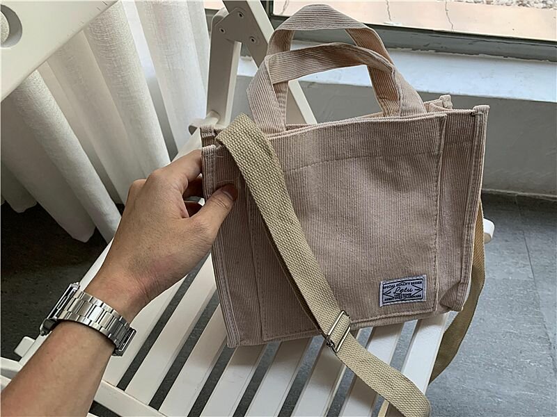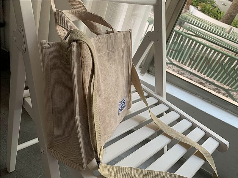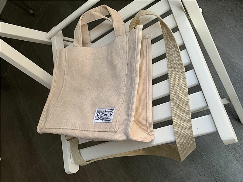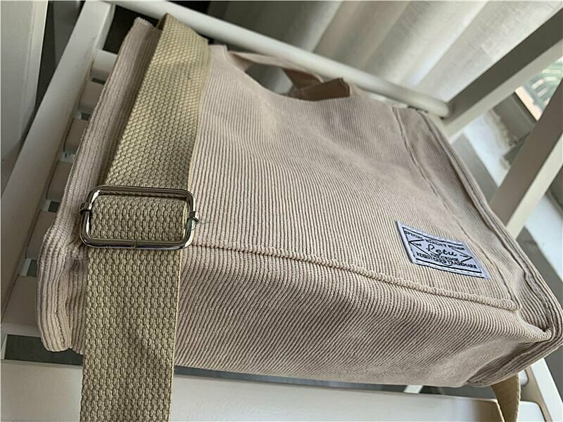 Сумка шоппер женская вельветовая на плечо кросс-боди, цвет бежевый