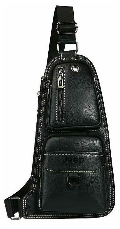 Мужская сумка через плечо "Jeep - 1941", черная, PU кожа, + портмоне клатч