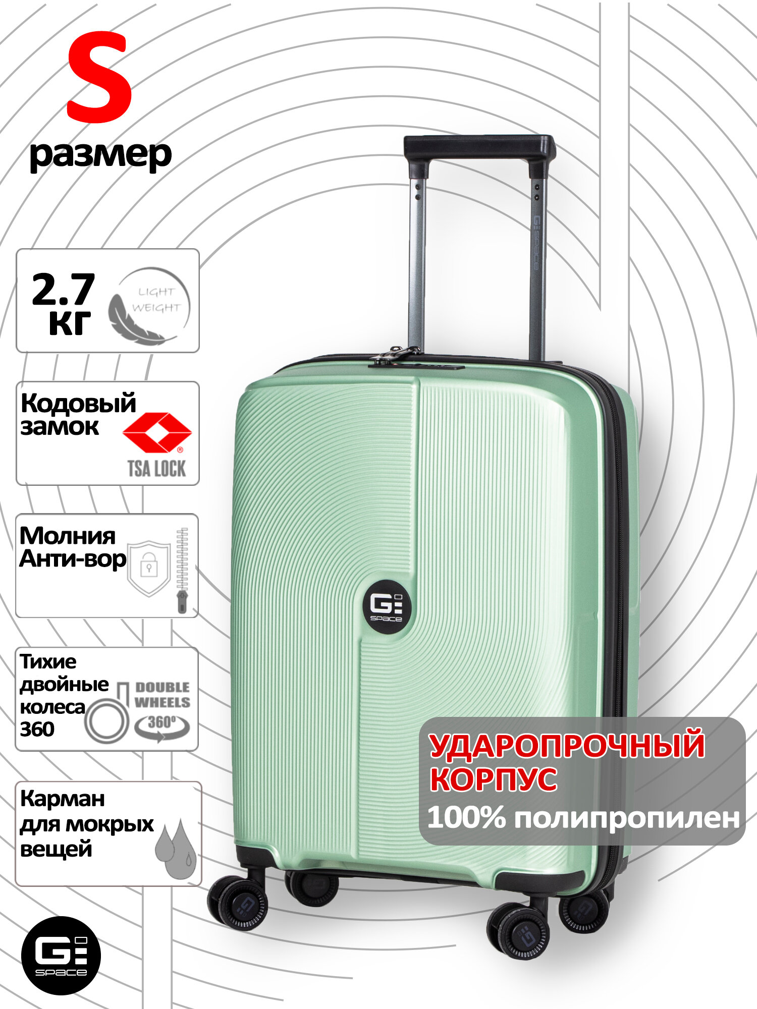 Купить Чемодан G SPACE, 36 л, размер S, зелeный