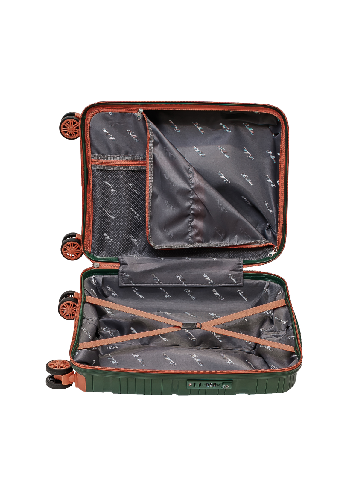 Чемодан на колесах BELLETTI 3052-56см (зеленый/коралловый) S, ручная кладь