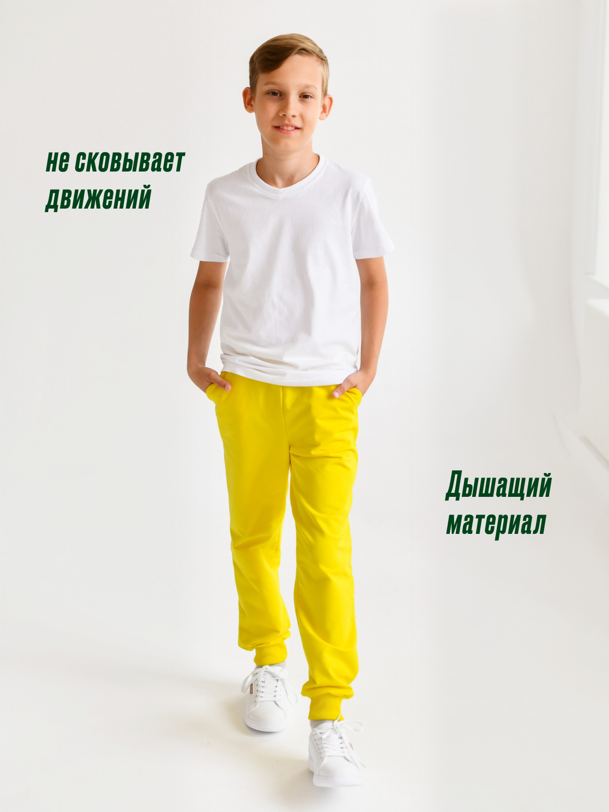 Детские спортивные брюки, джоггеры для мальчиков, цвет желтый, размер 104