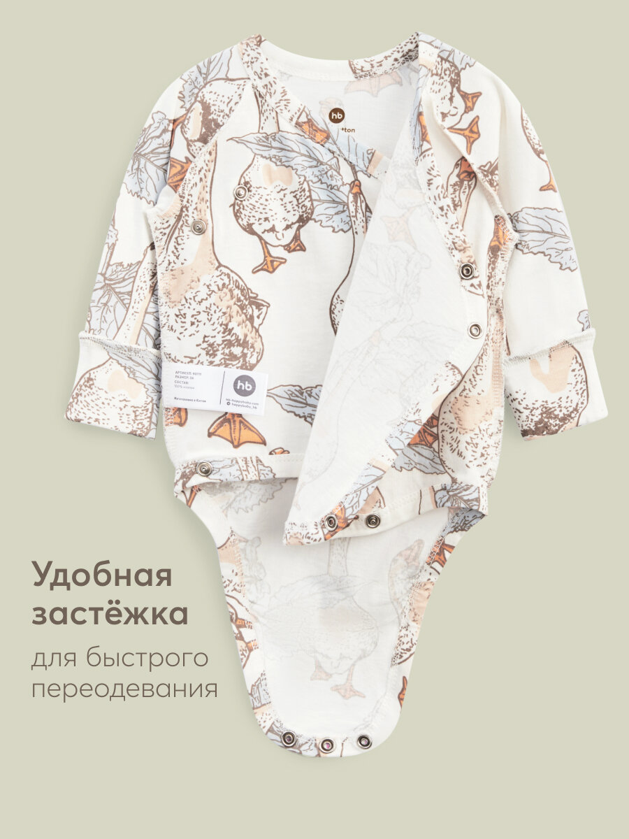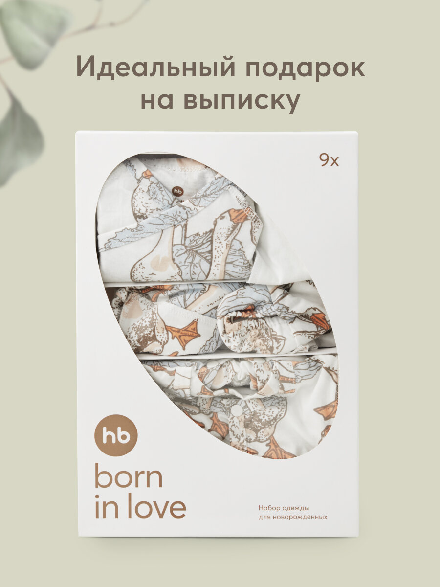 90111, Набор одежды для новорожденных Happy Baby, хлопок, 9 предметов, на выписку, подарочный, молочный, с гусями, рост 56