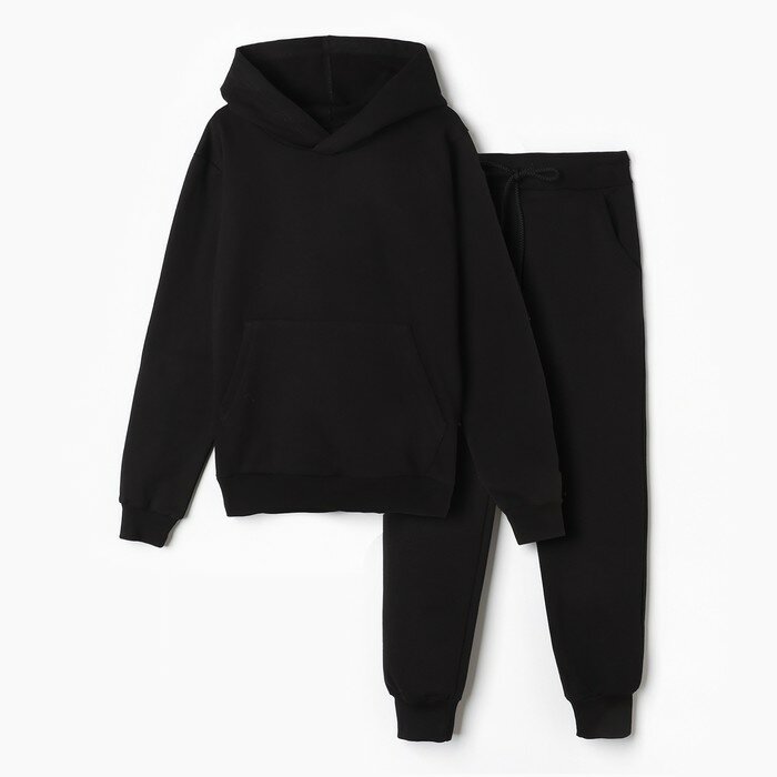 Комплект детский (толстовка,брюки) начёс, цвет тёмно-серый, рост 146 см