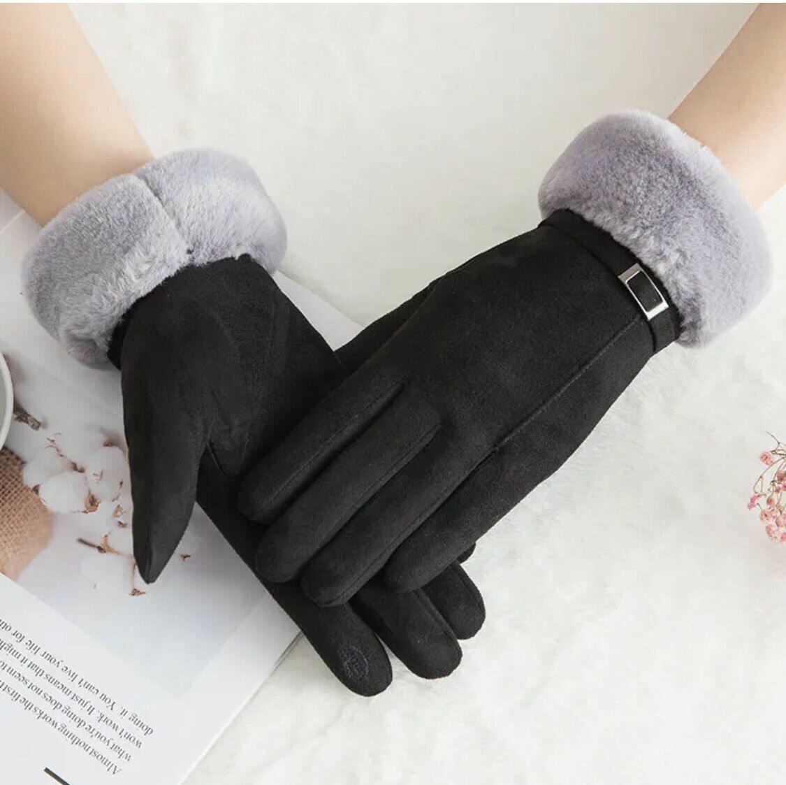 Женские зимние перчатки с мехом, мягкие утепленные сенсорные перчатки, цвет: черный