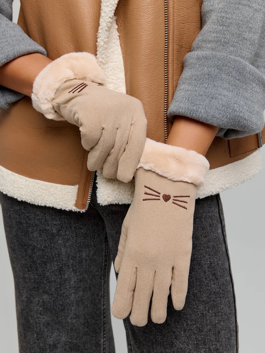 Перчатки Зимняя коллекция для женщин, размер 6-8, бежевый интересное: