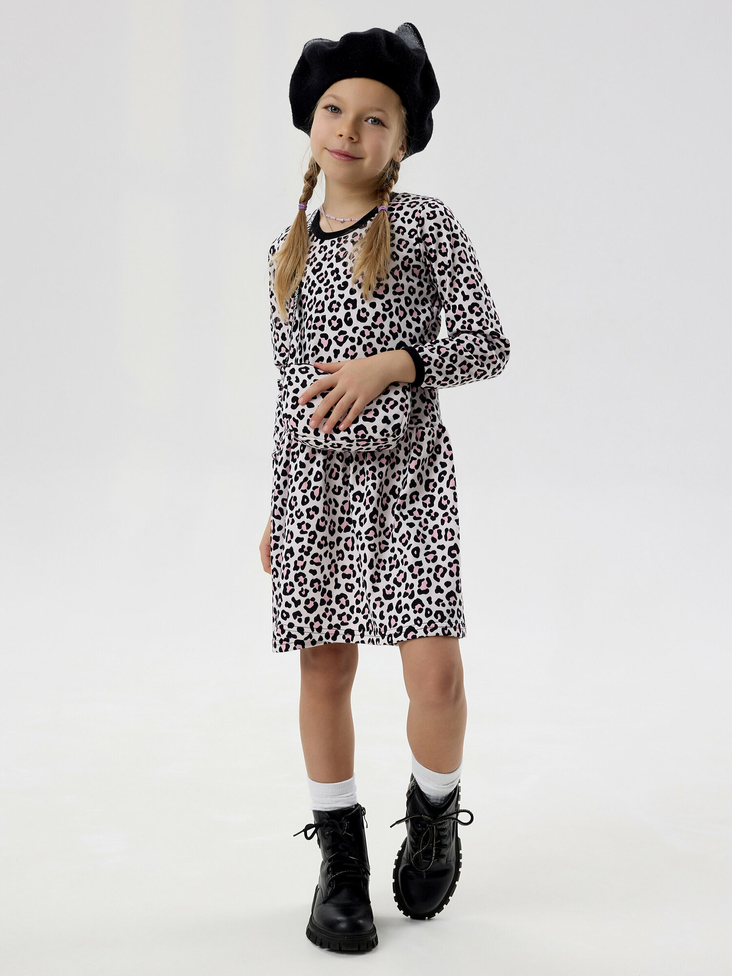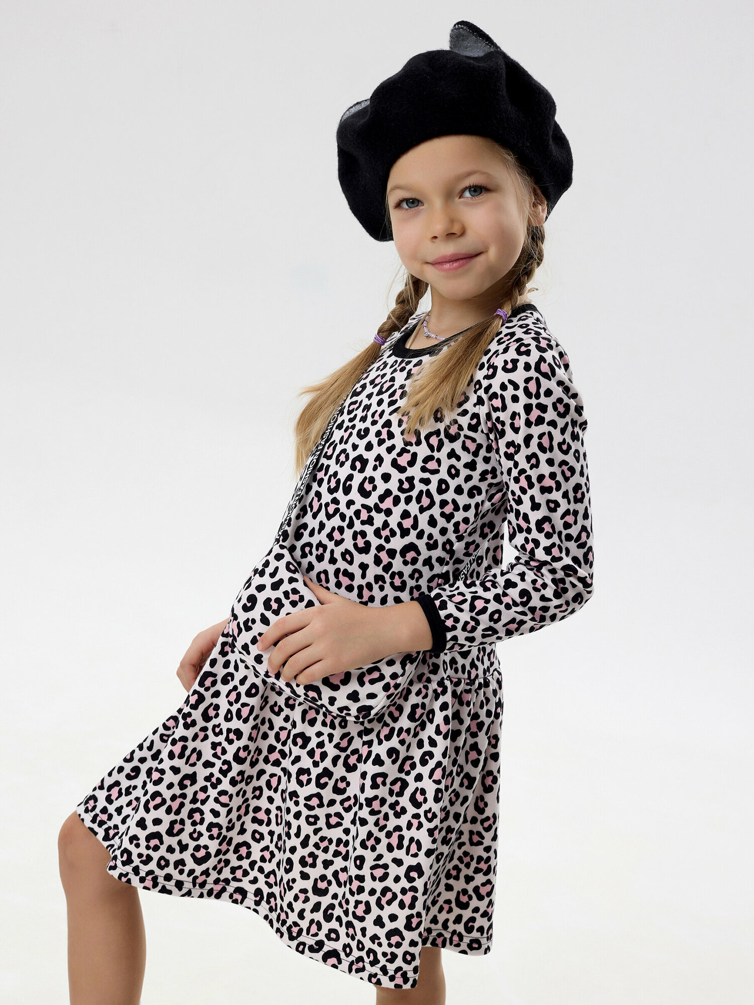 Детское леопардовое платье с сумочкой, Дети в Цвете, размер 98
