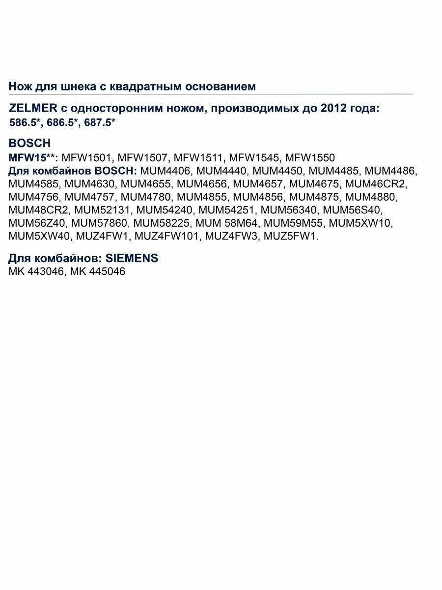 Нож для мясорубки Zelmer, Bosch, Siemens до 2012 года