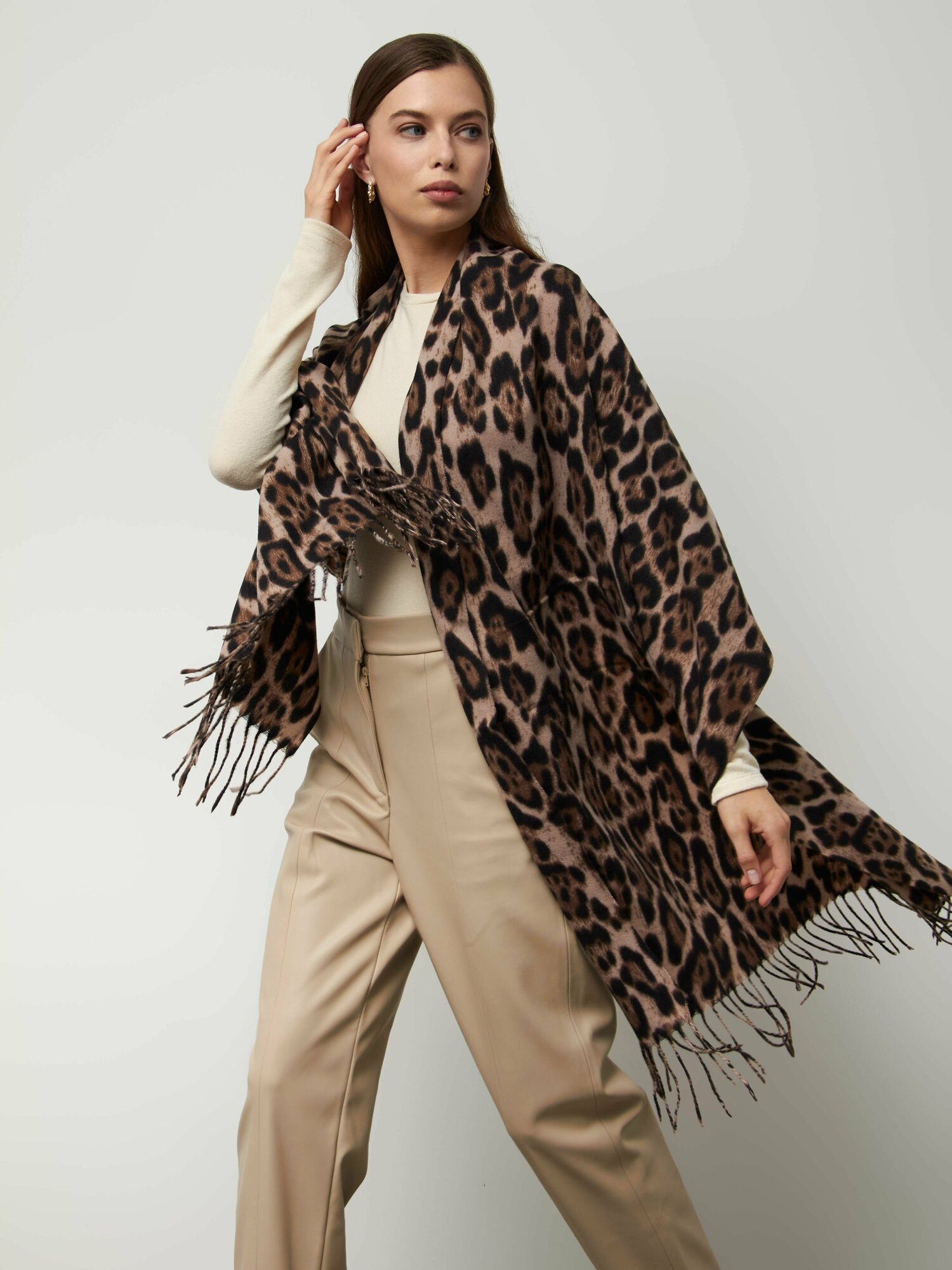 Палантин леопардовый теплый c кашемиром