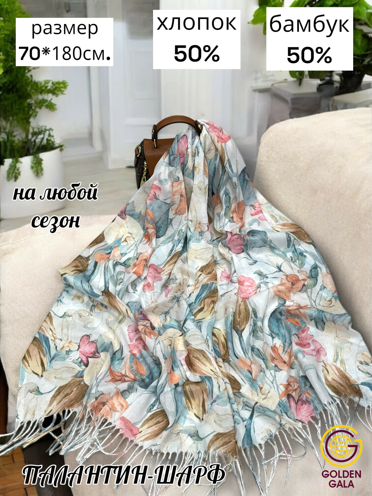 Купить Палантин GOLDEN GALA модная коллекция 2025 год для женщин,180х70 см