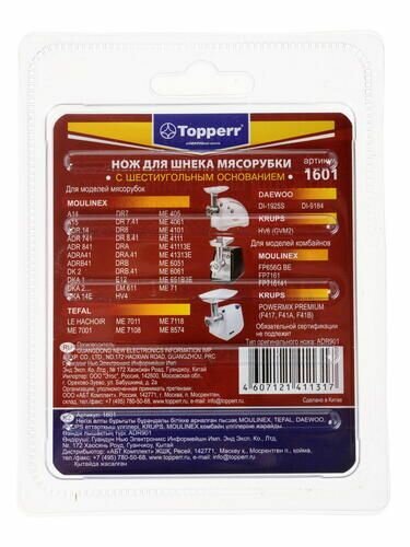 Купить Topperr Нож для мясорубки: Moulinex, Tefal, Daewoo, Krups, Tefal, Starwind, Scarlett, Supra, Polaris, Bork, 1601