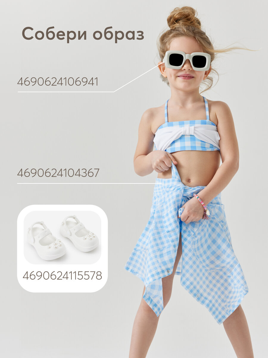 50652, Купальник раздельный для девочки Happy Baby купальник для девочки, быстросохнущий солнцезащитные UPF50+, голубой в клетку, размер 104-110