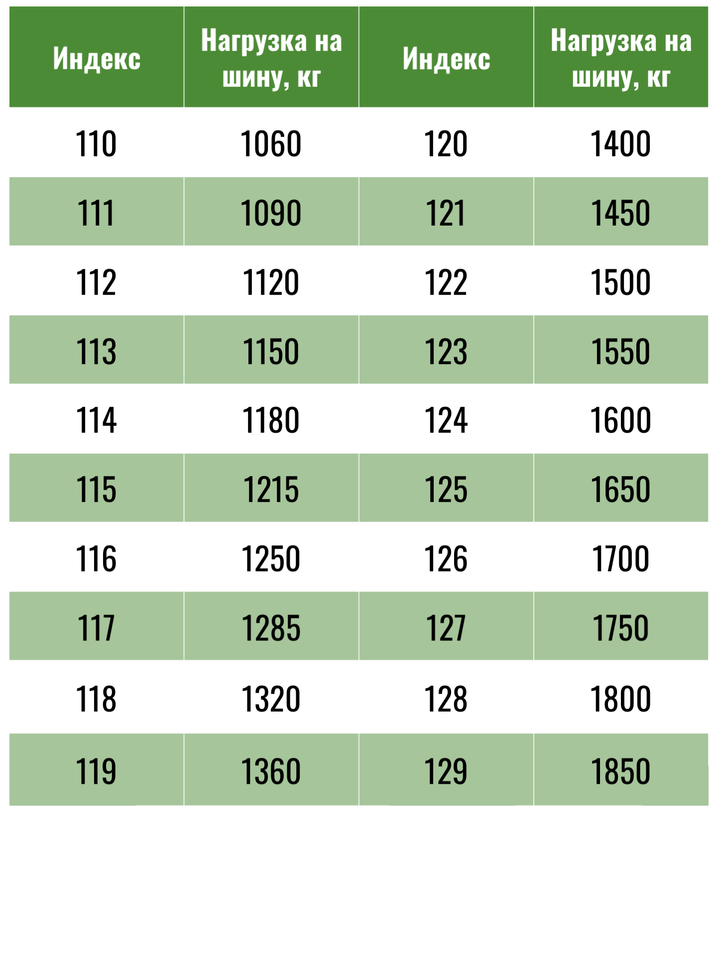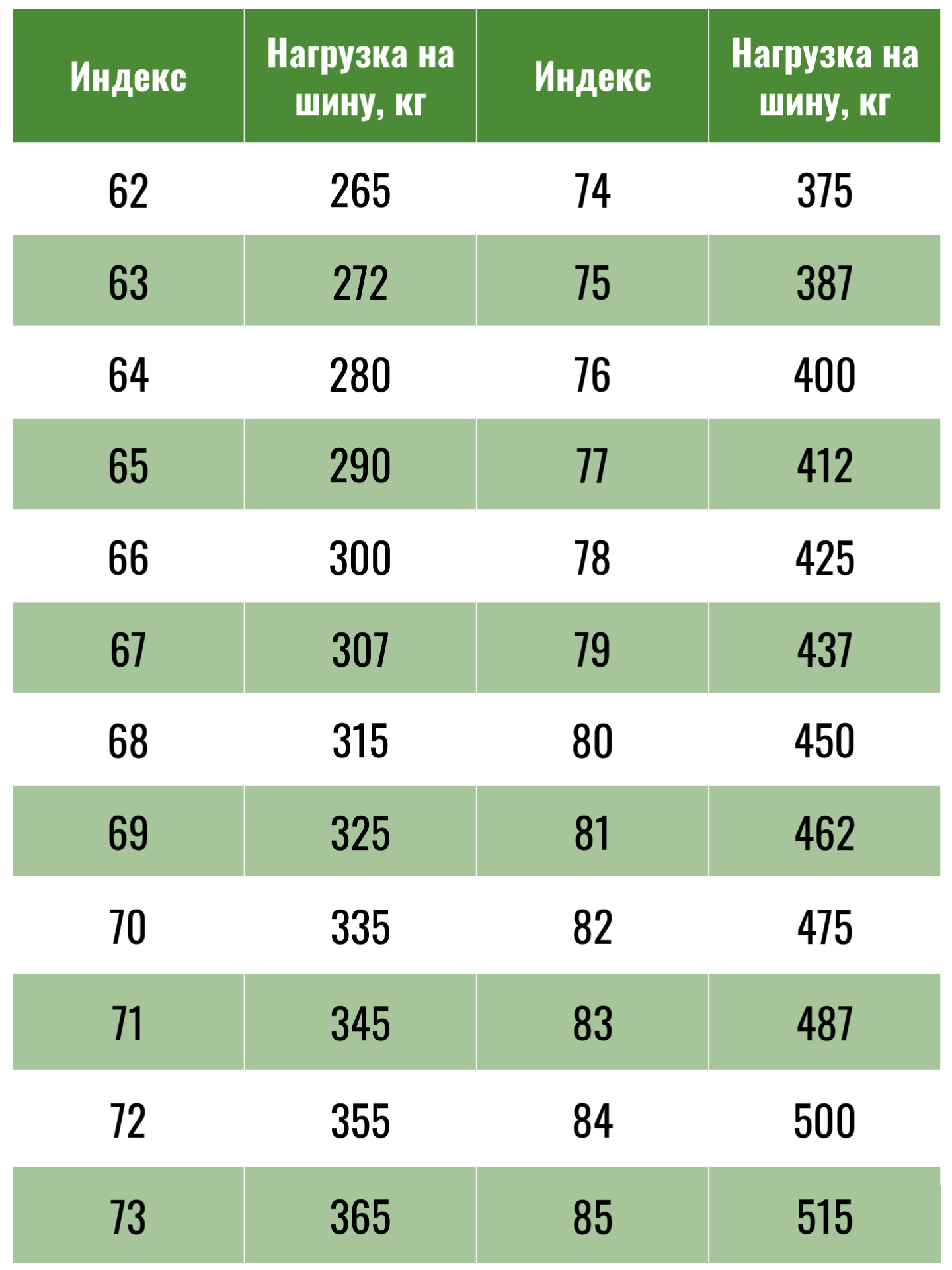| Максимальная нагрузка (на одну шину) | 775 кг |