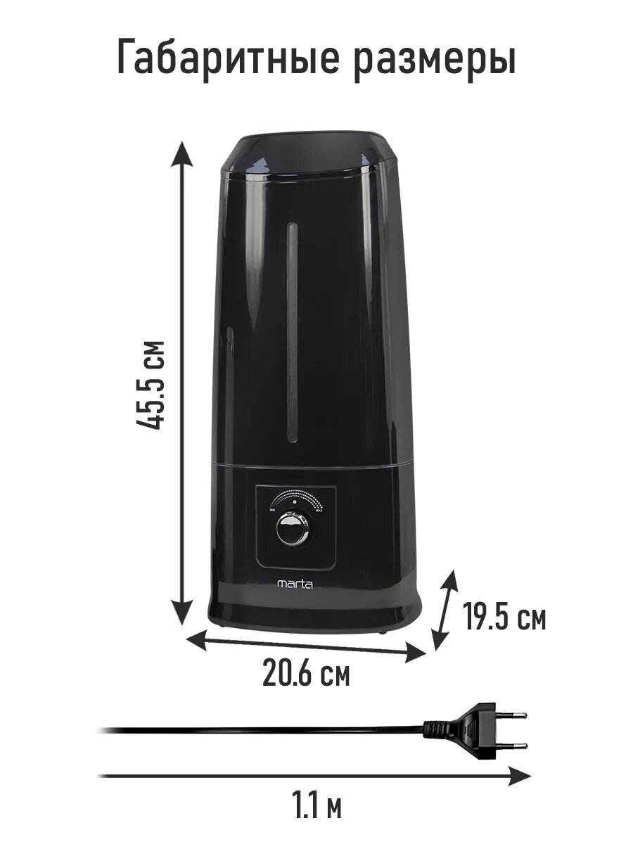 Увлажнитель воздуха ультразвуковой MARTA MT-HF4702A верхний залив антивирусная УФ - лампа черный жемчуг интересное: