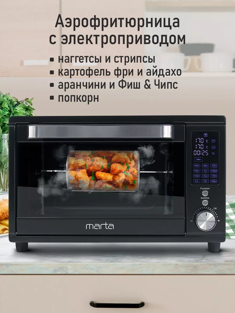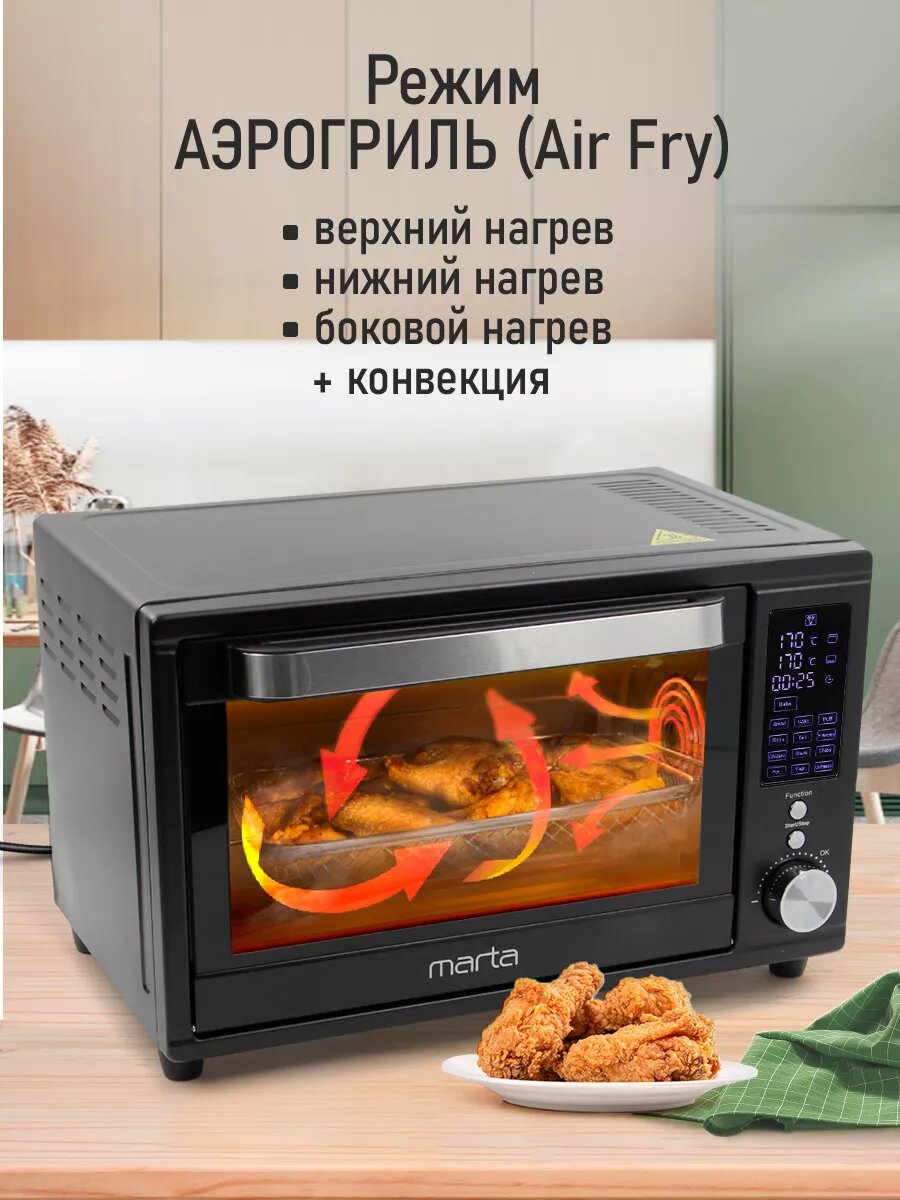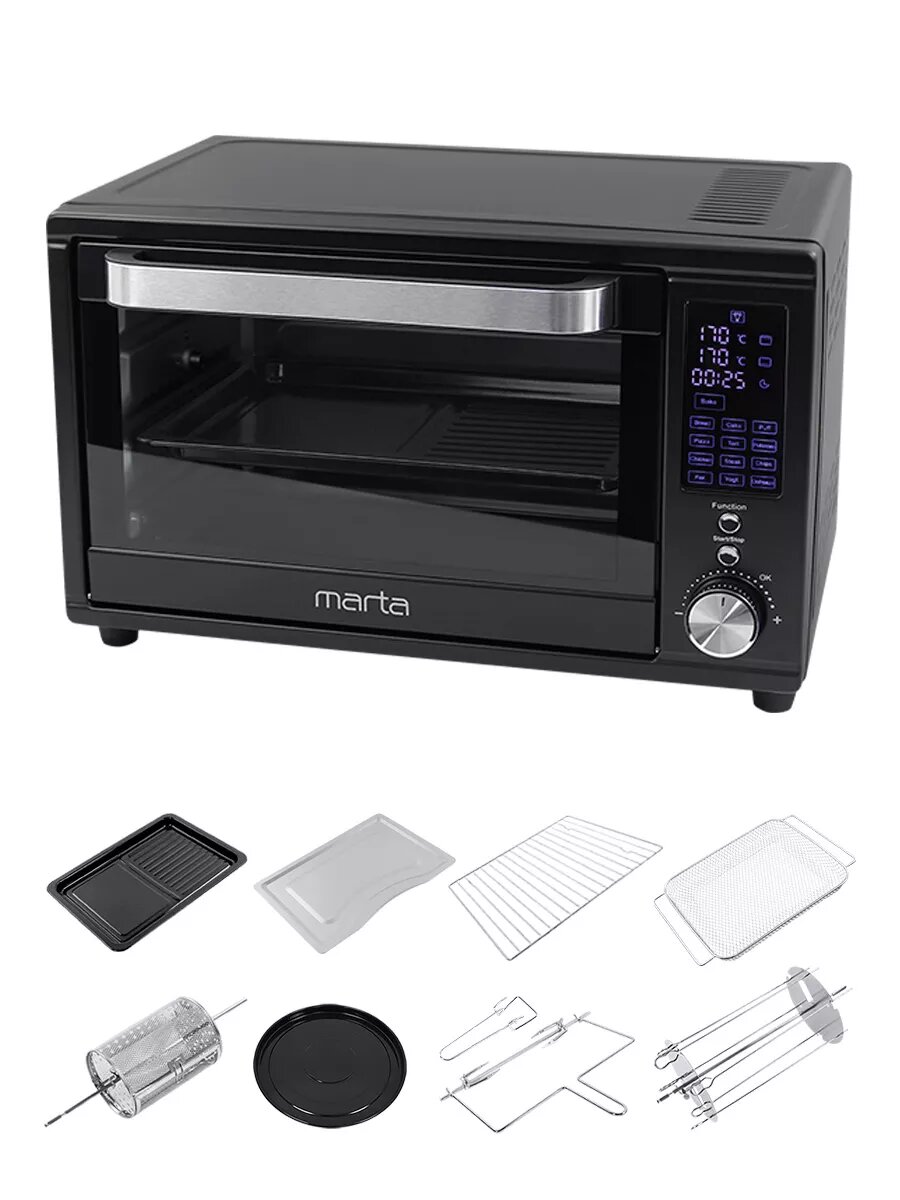 Аэрогриль духовка духовой шкаф мини-печь гриль аэрофритюрница сушилка тостер 7 в 1 MARTA MT-EO4294C 32 литра конвекция шашлычница аэрофритюрница вертел черный жемчуг интересное: