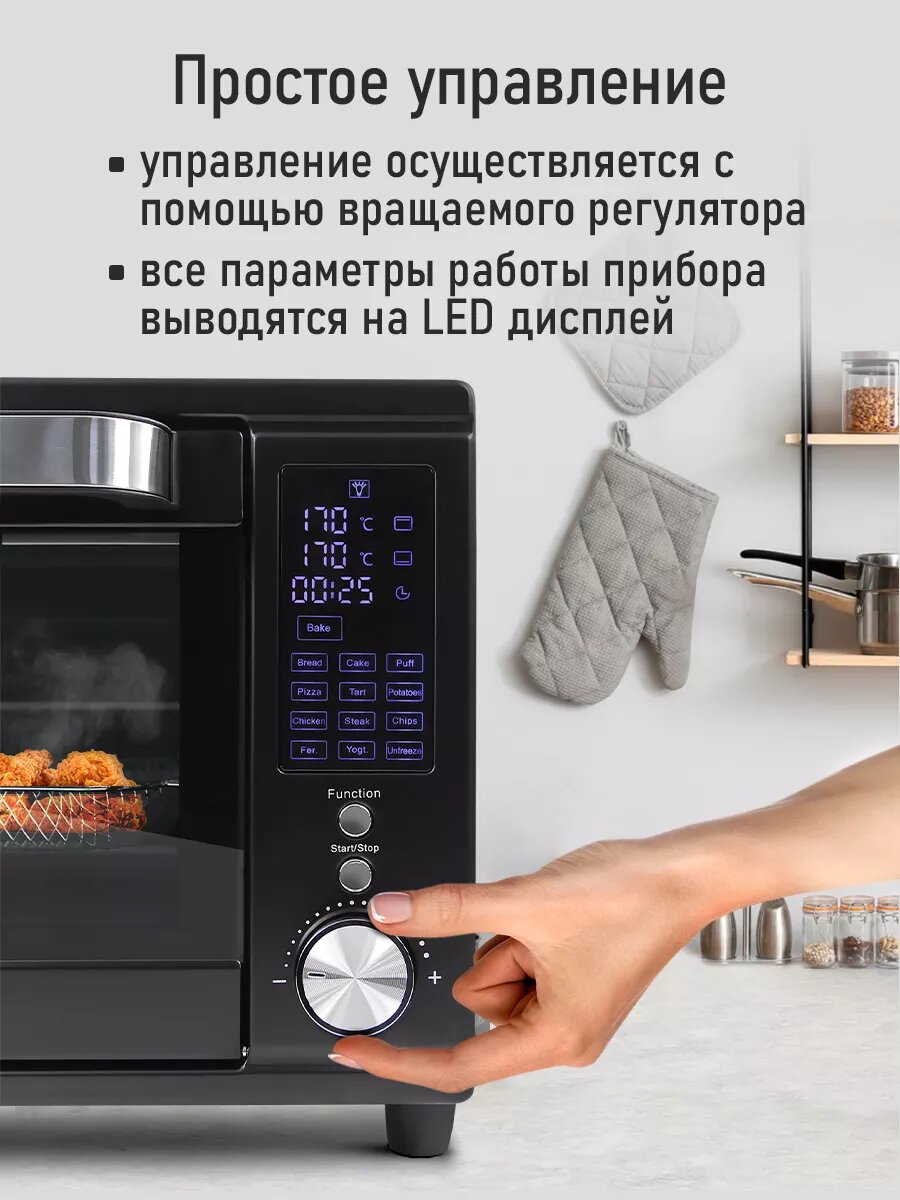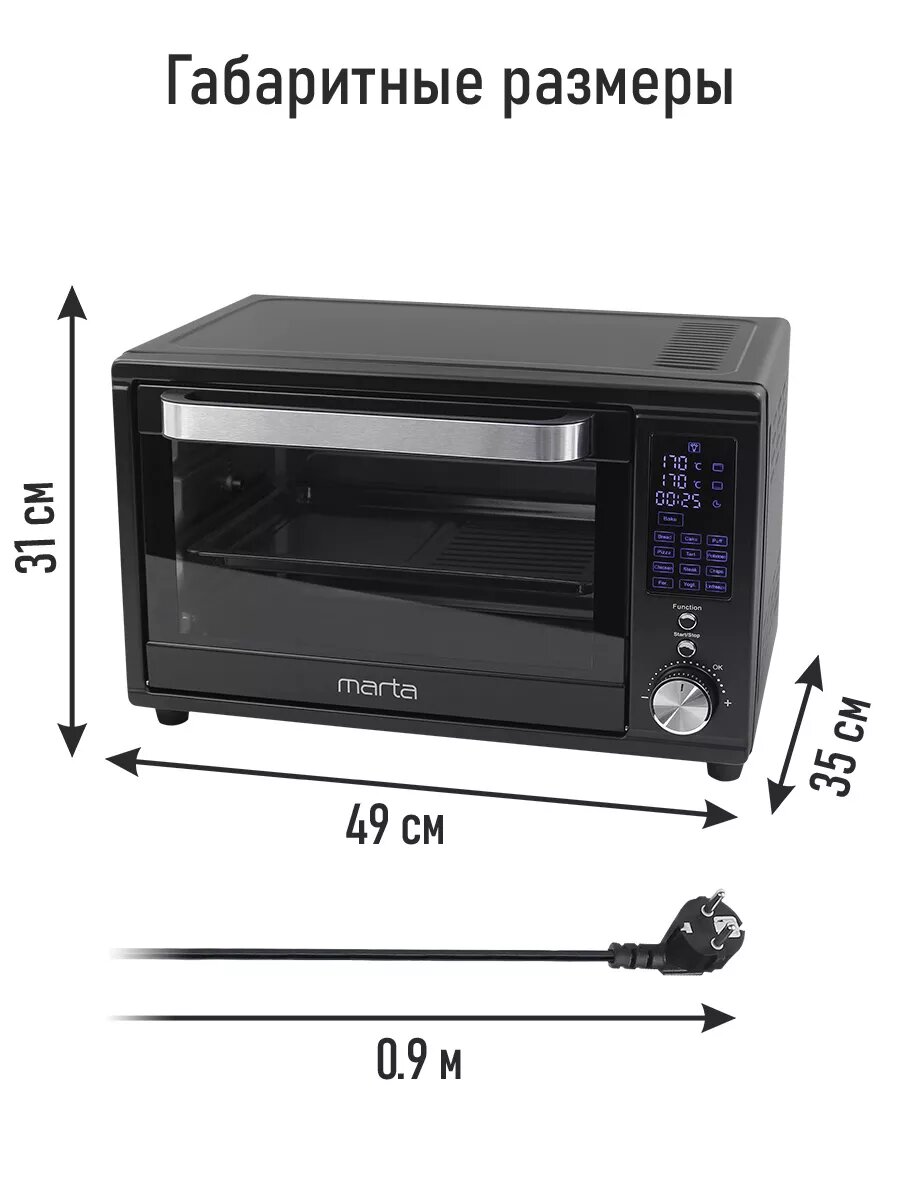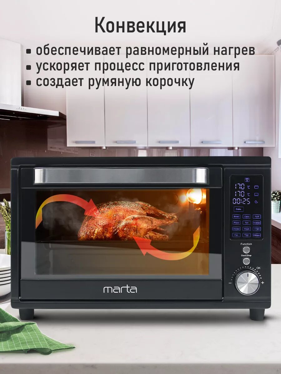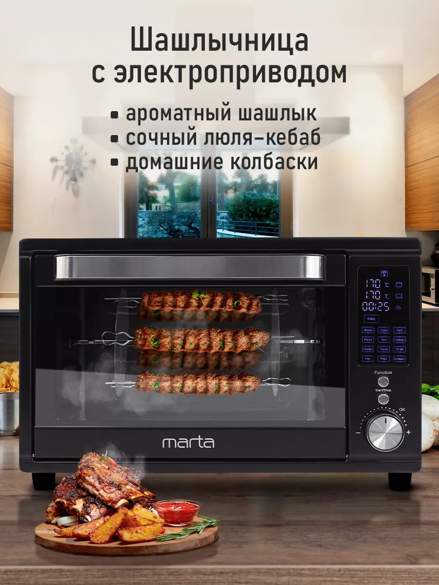 Аэрогриль духовка духовой шкаф мини-печь гриль аэрофритюрница сушилка тостер 7 в 1 MARTA MT-EO4294C 32 литра конвекция шашлычница аэрофритюрница вертел черный жемчуг интересное: