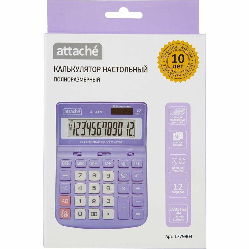 Калькулятор настольный полноразм Attache AF-447P,12р, дв. пит, фиол,198x153x42 интересное: