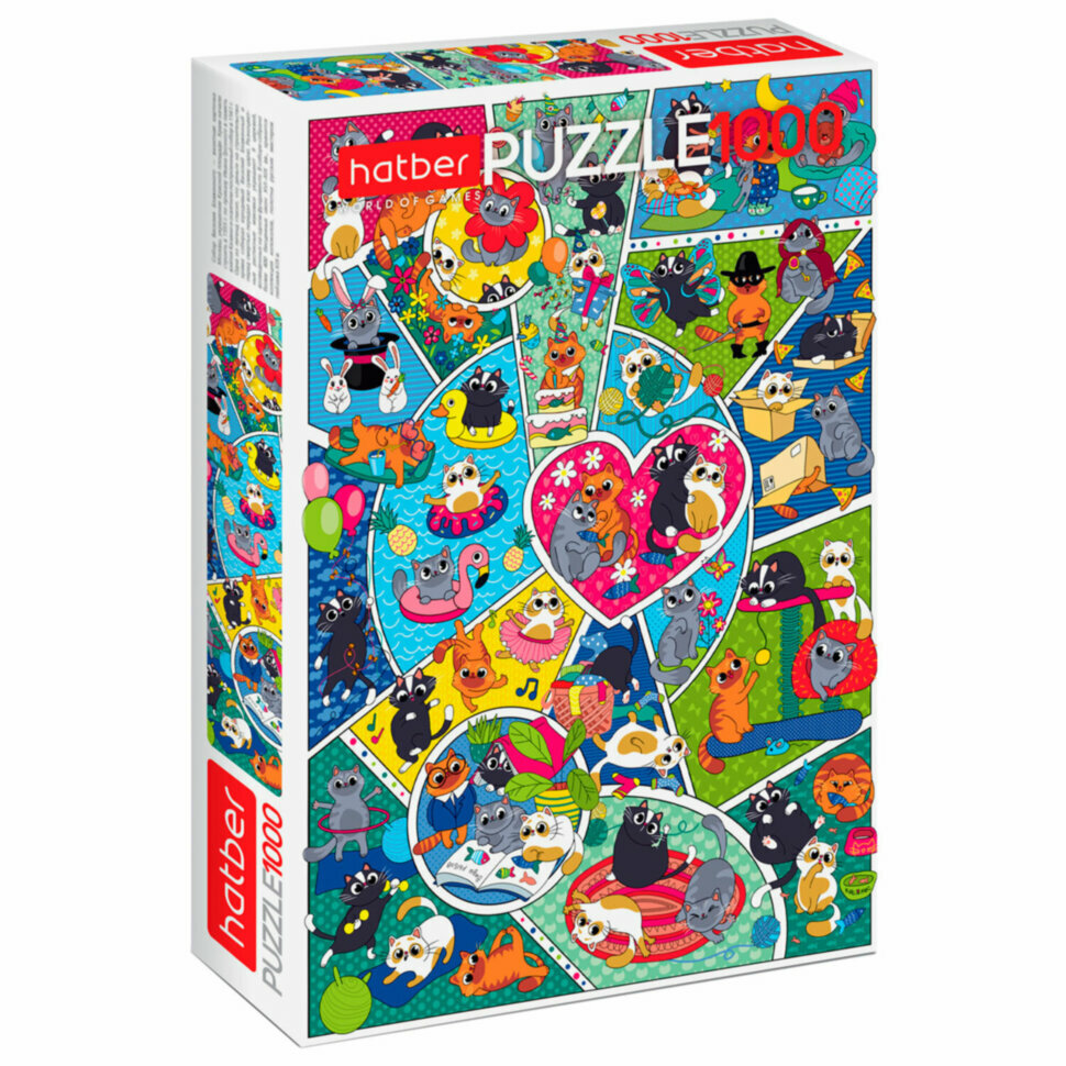 Купить Пазл картонный 1000 элементов ассорти, 10 дизайнов, 480х680 мм, HATBER, 10 шт, 665495