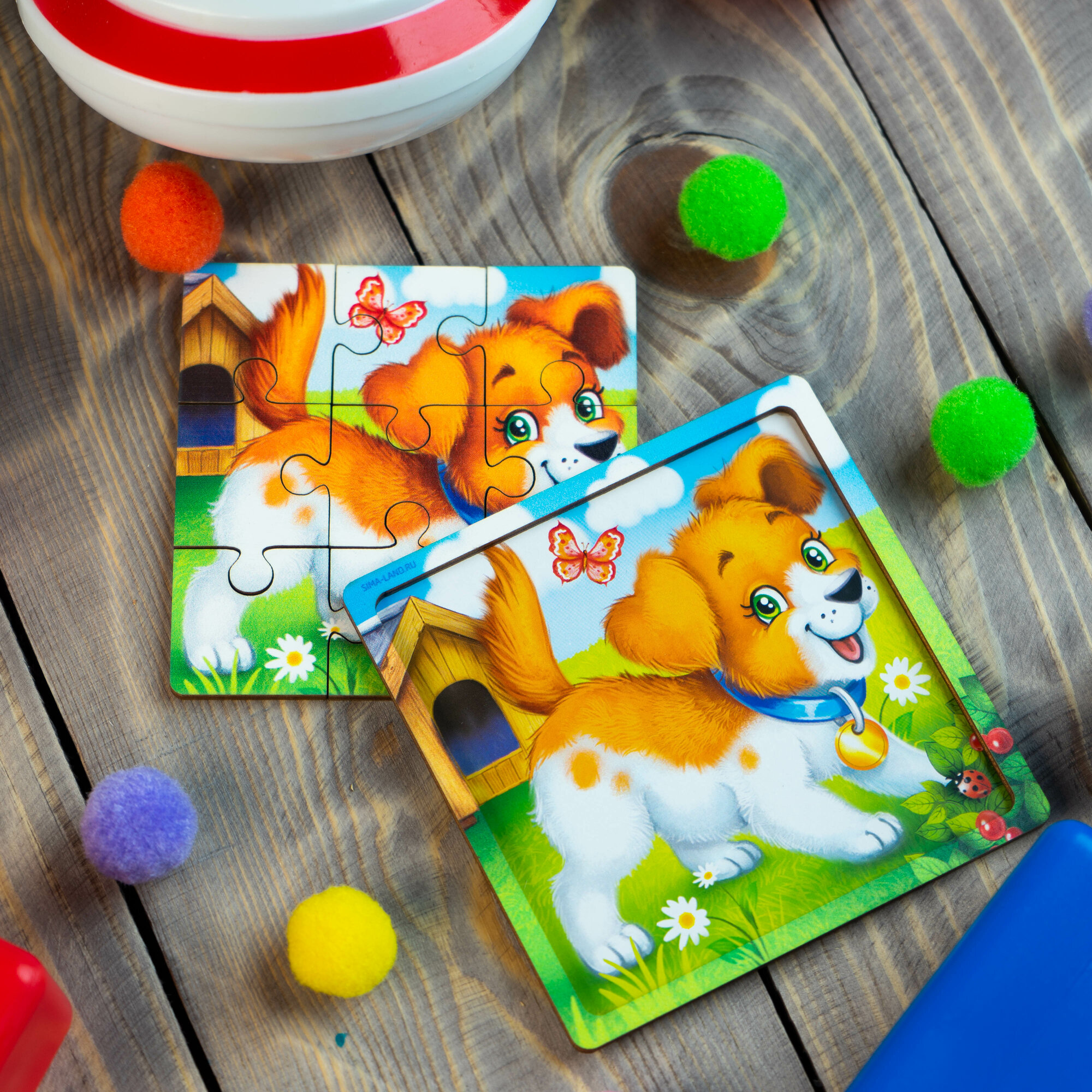 Пазл Лесная мастерская "Щенок", дерево, 9 элементов интересное: