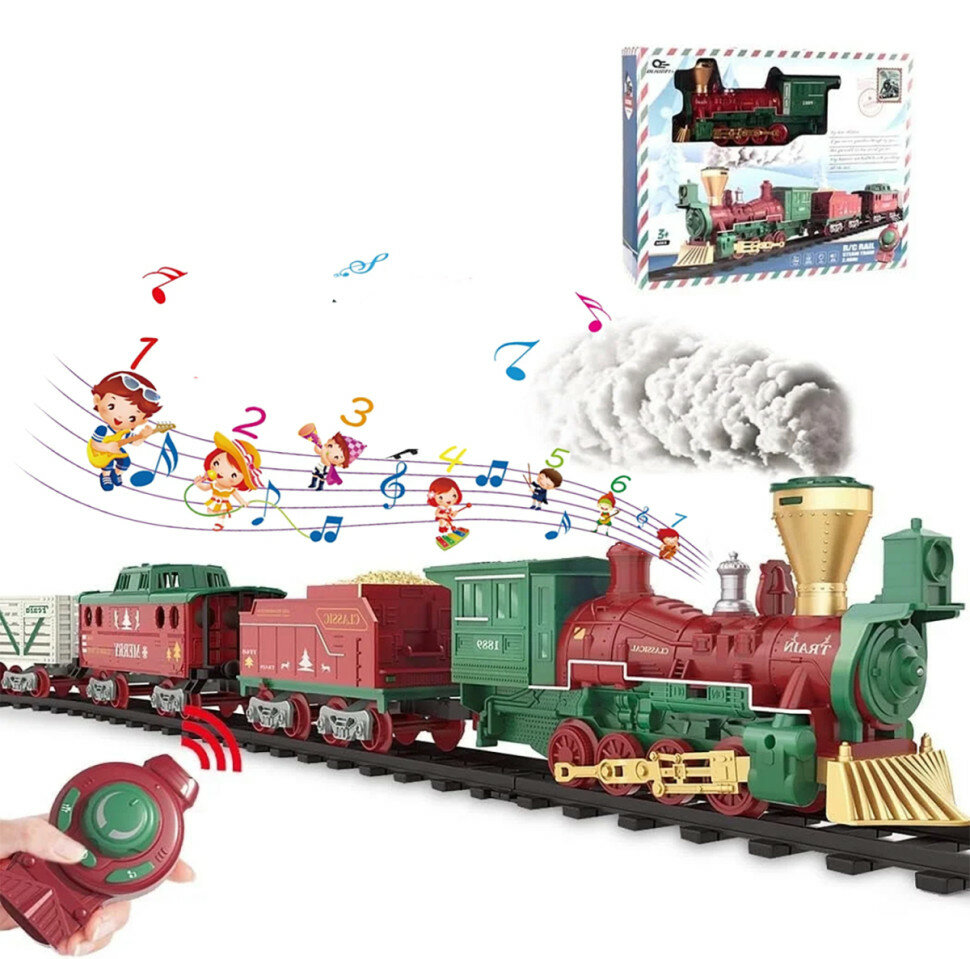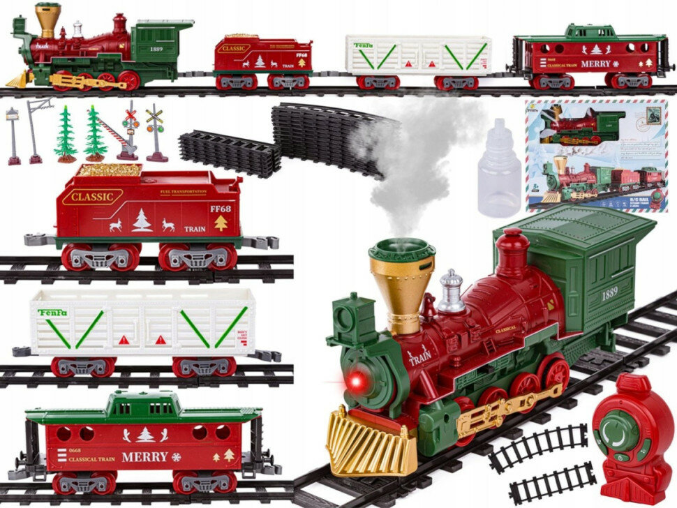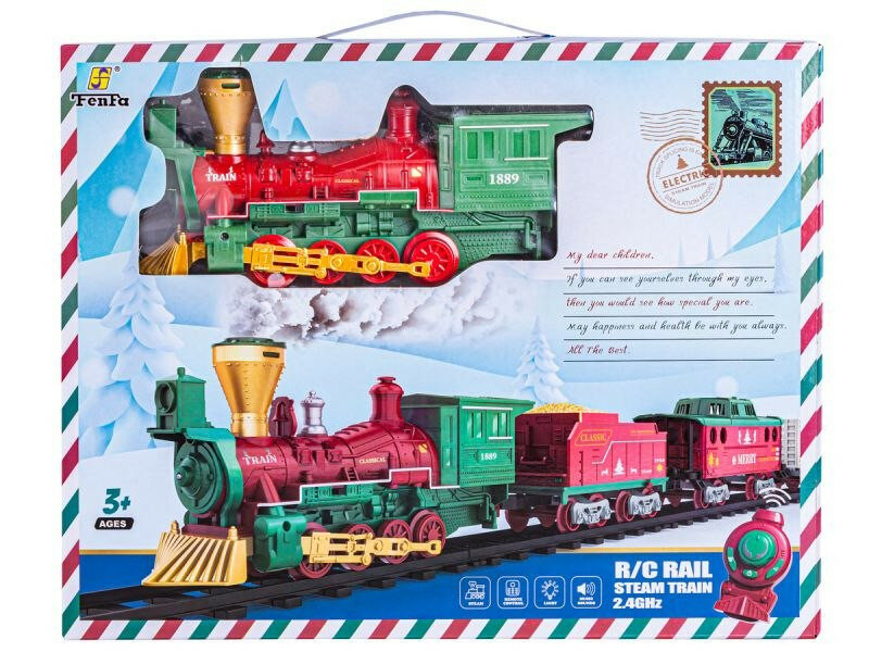 Купить Железная дорога Новогодний поезд Fenfa (3 вагона, пар, пульт, свет, звук) - 1613F