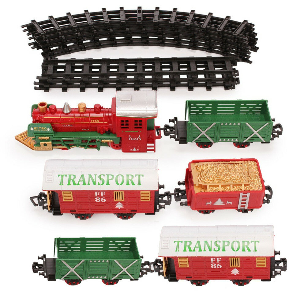 Купить Железная дорога Новогодний поезд Fenfa (5 вагонов, звук, пускает пар) - 1603D