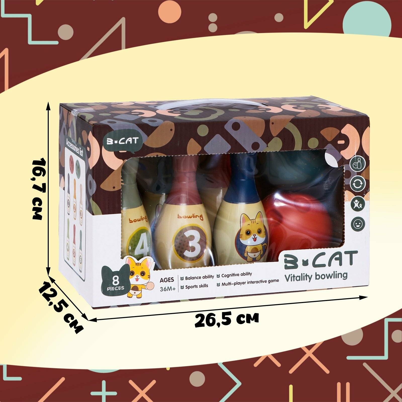 Боулинг «Котята», 6 кеглей 15×5 см, 2 мяча, диаметр 8 см