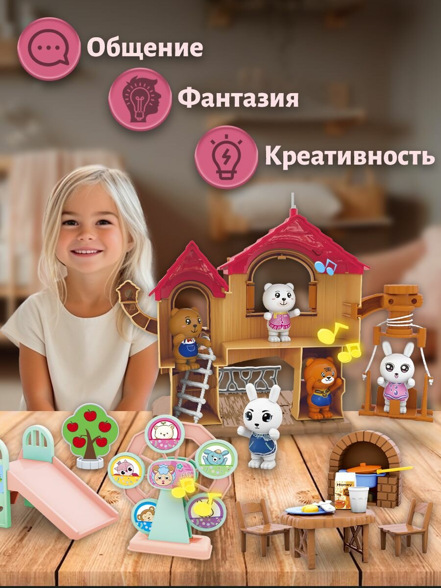 Кукольный домик с мебелью WiMi и фигурками животных