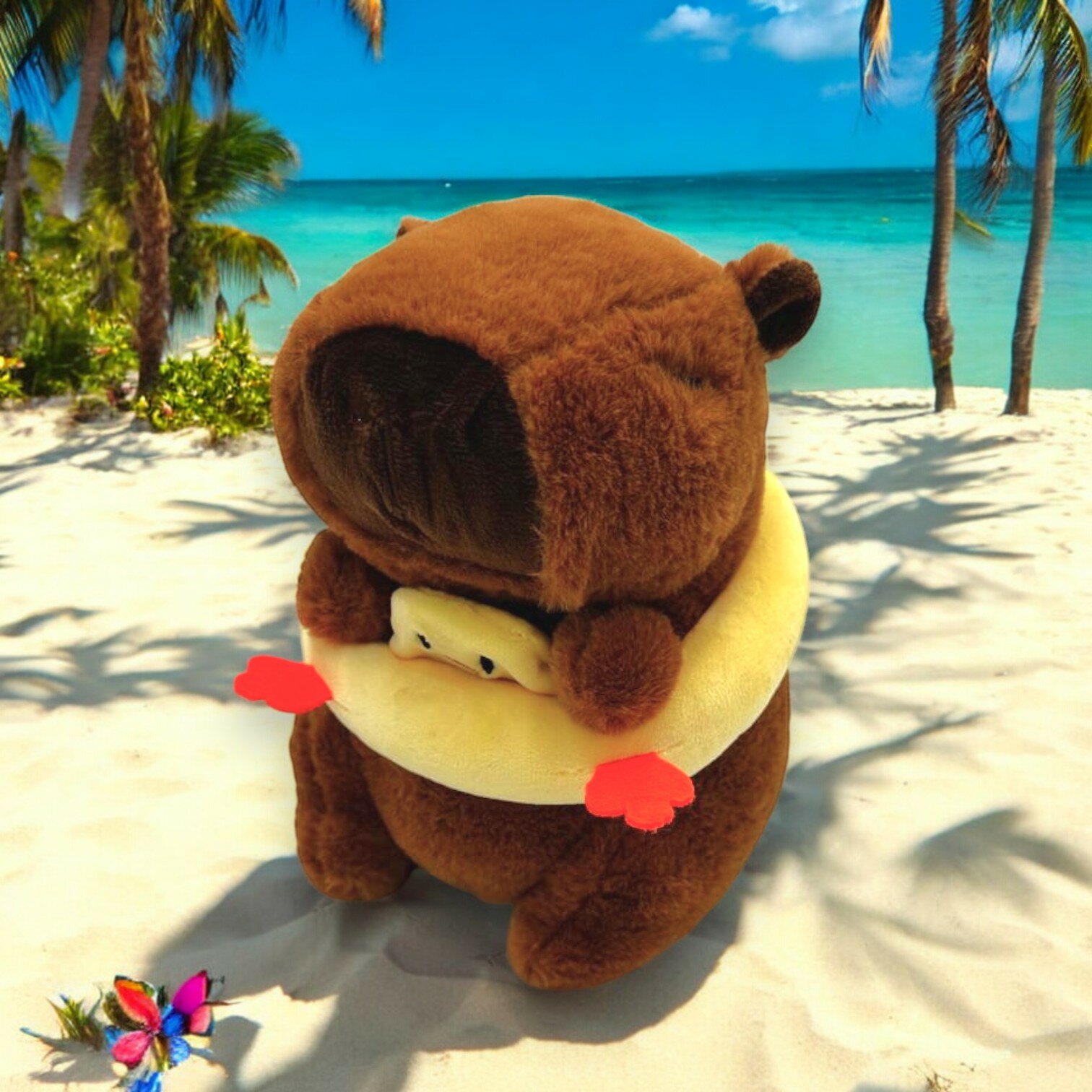 Мягкая игрушка Капибара с кругом лягушонок 20см