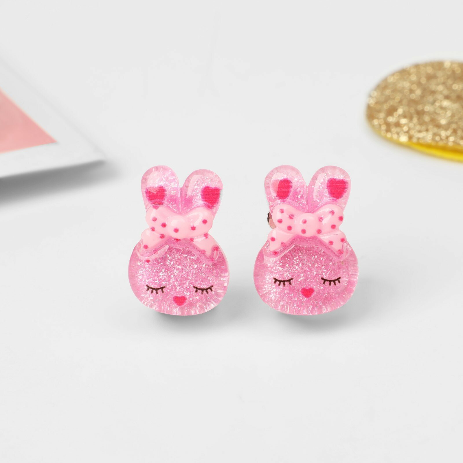 Серёжки-клипсы для ушей детские "Зайка", серьги без прокола, украшение-бижутерия для девочек, цвет розовый