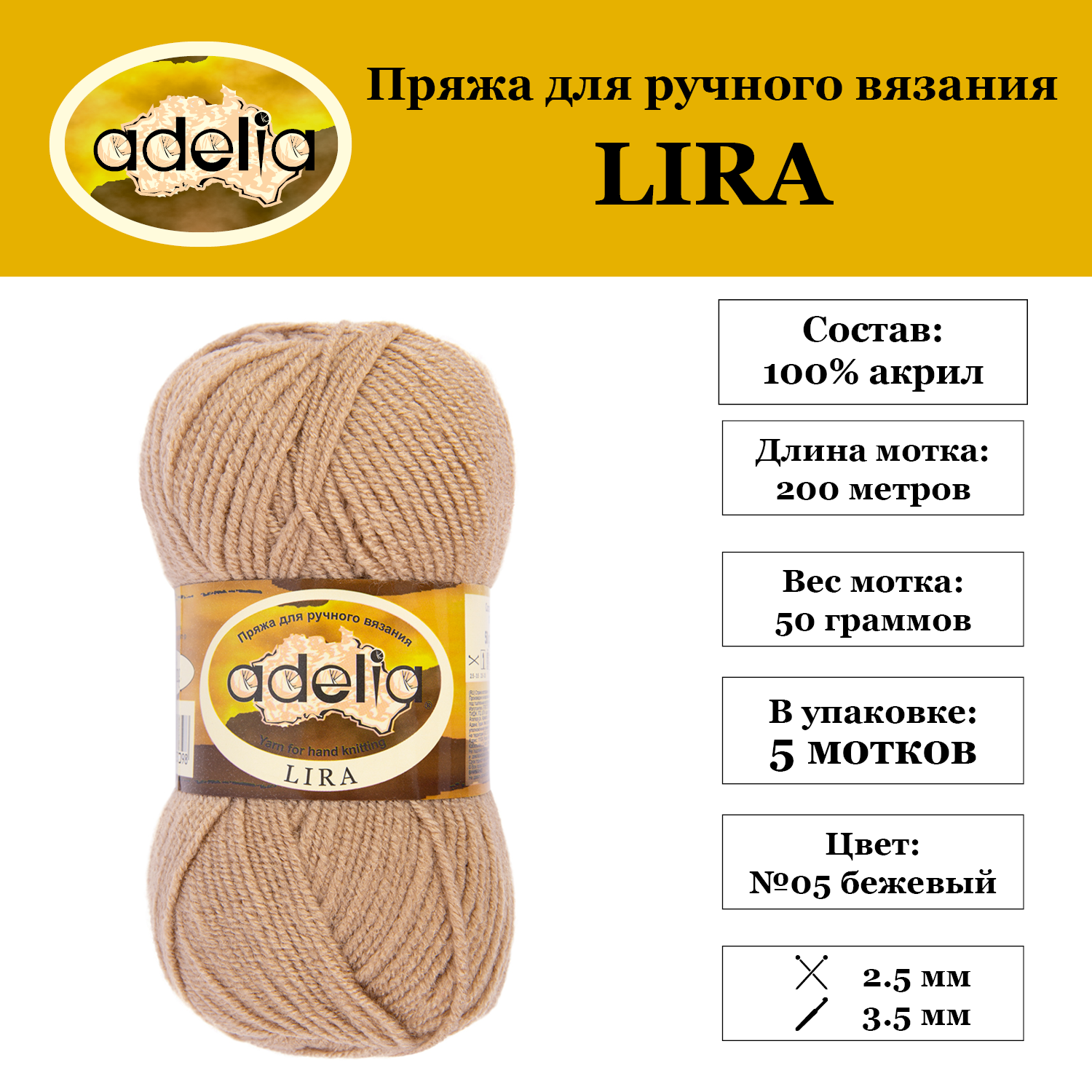 Купить Пряжа Adelia "LIRA" 5 шт. по 50 г. набор, 100% акрил, 200 м. №05 бежевый