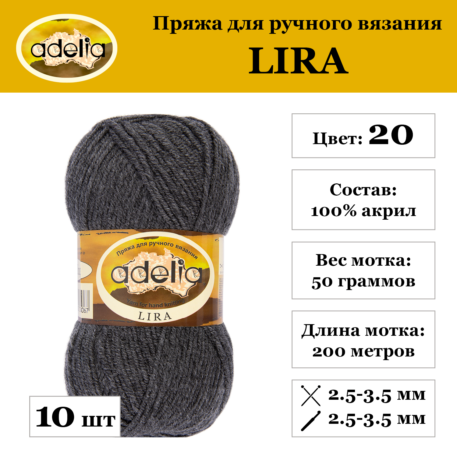 Купить Пряжа Adelia "LIRA", 10 шт. по 50 г, набор, 100% акрил 200 м №20 т. серый