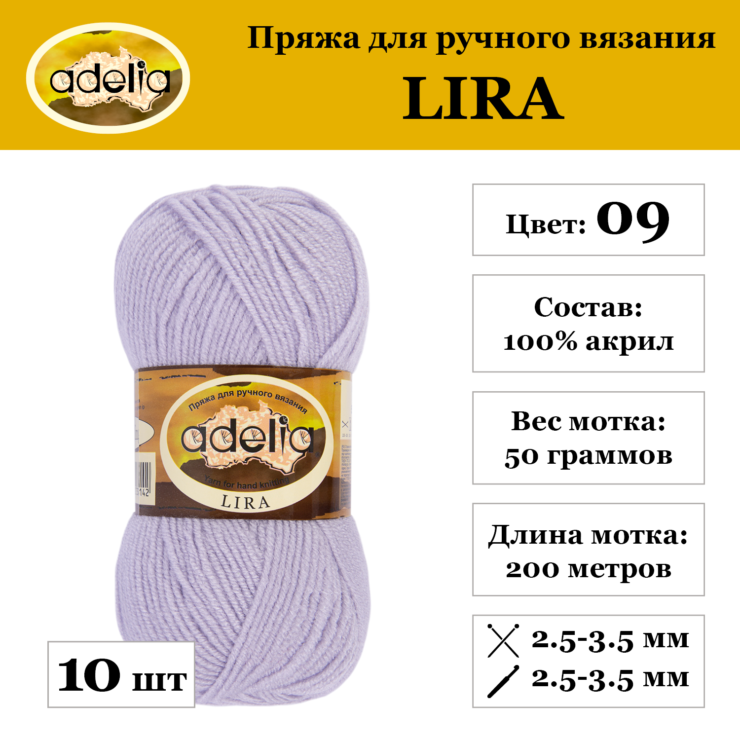 Купить Пряжа Adelia "LIRA", 10 шт. по 50 г, набор, 100% акрил 200 м №09 св. сиреневый