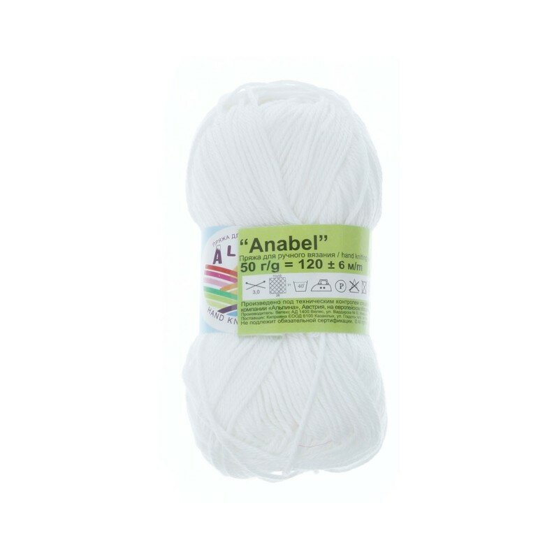 Купить Пряжа ALPINA "ANABEL" 100% мерсеризованный хлопок 50 г 120 м №002 белый