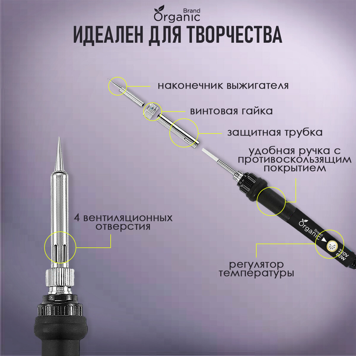 Выжигатель по дереву Organic Brand с набором насадок, мощность 60 Вт