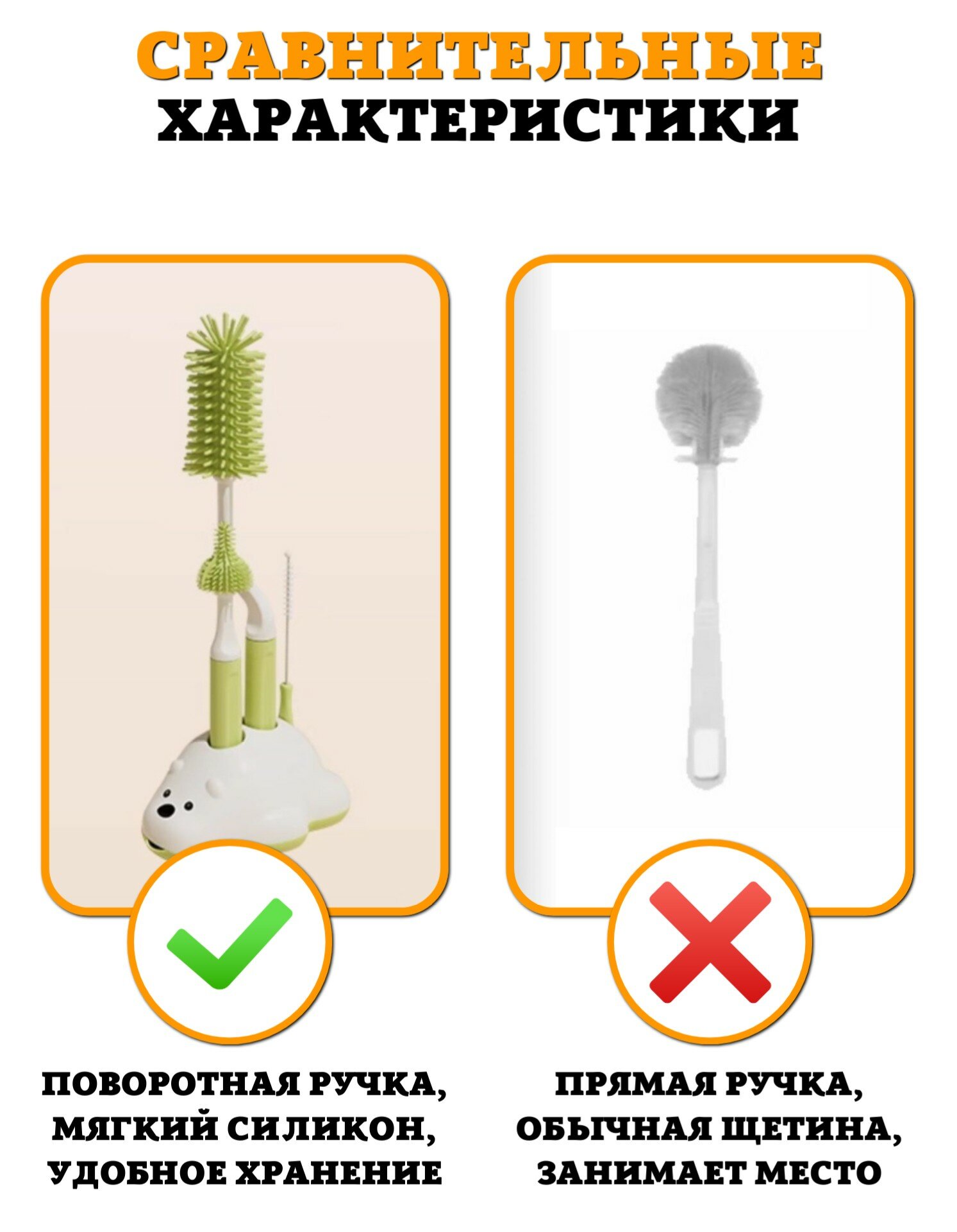 Ершик силиконовый Floopsi для детских бутылочек и сосок 3шт, на подставке. Сушилка для ершиков интересное: