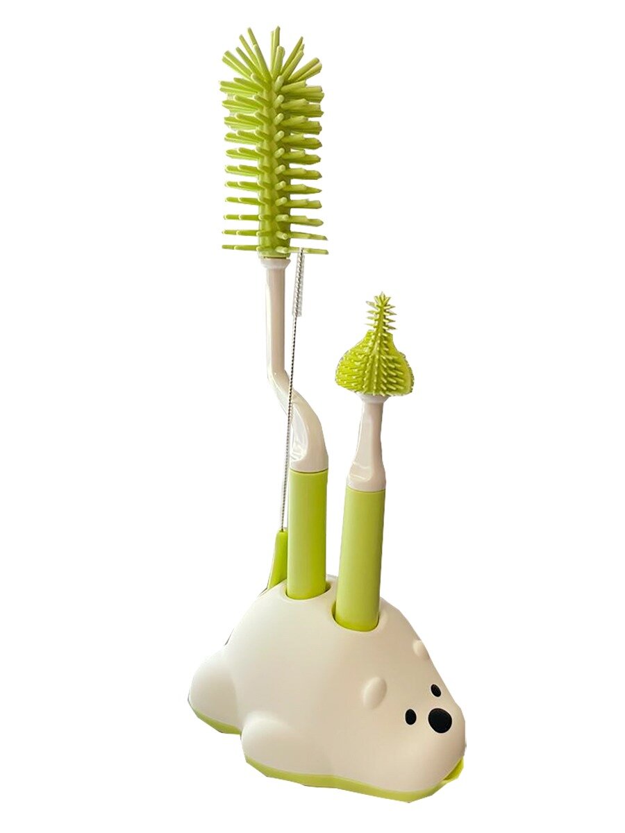 Ершик силиконовый Floopsi для детских бутылочек и сосок 3шт., на подставке. Сушилка для ершиков
