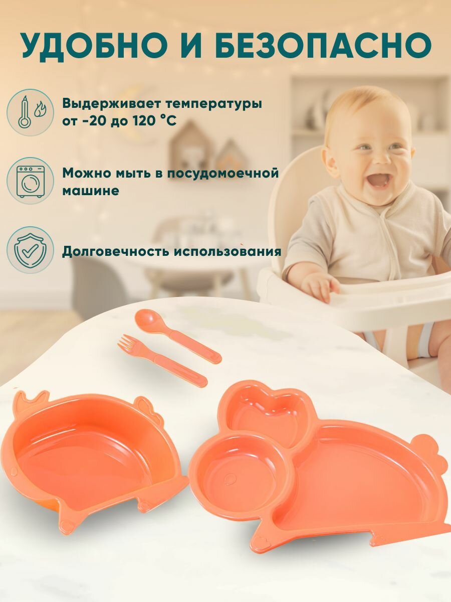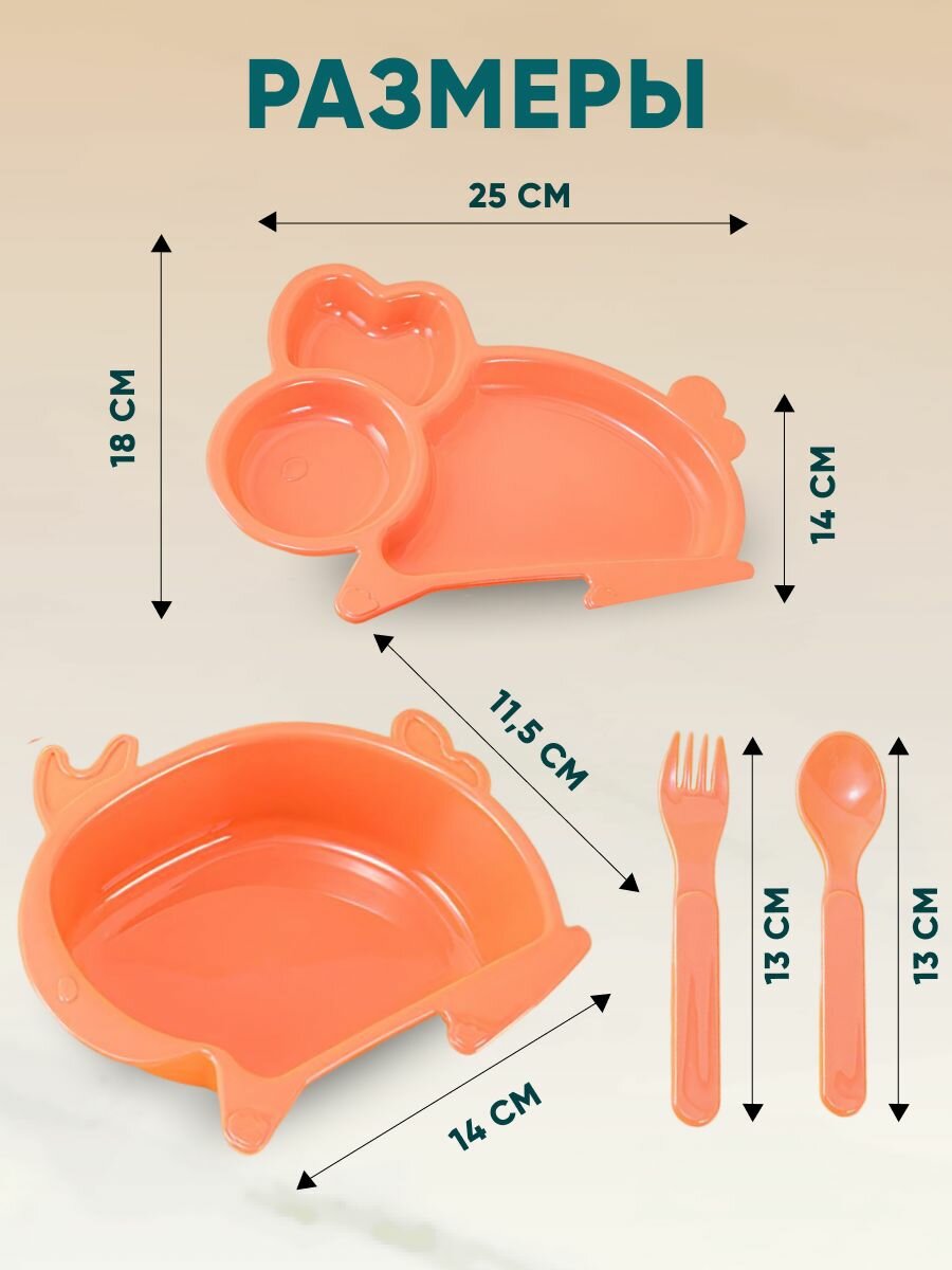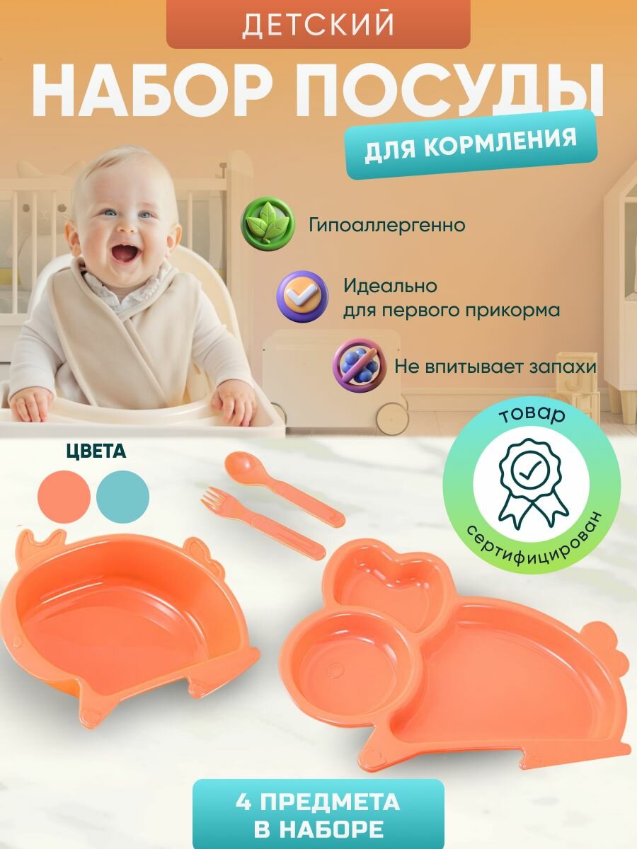 Набор детской посуды для кормления малыша "зайчик", 4 предмета, секционная тарелка, поильник интересное: