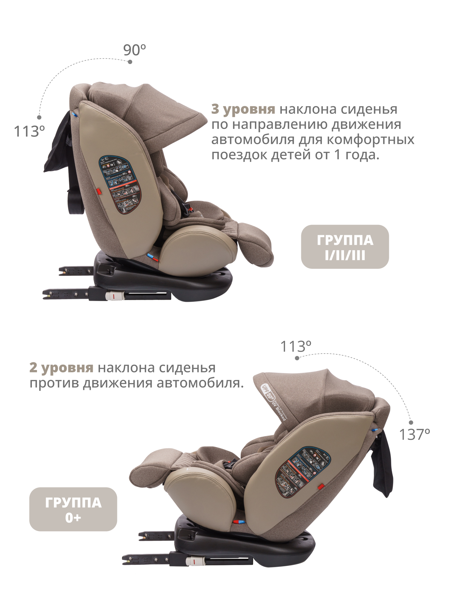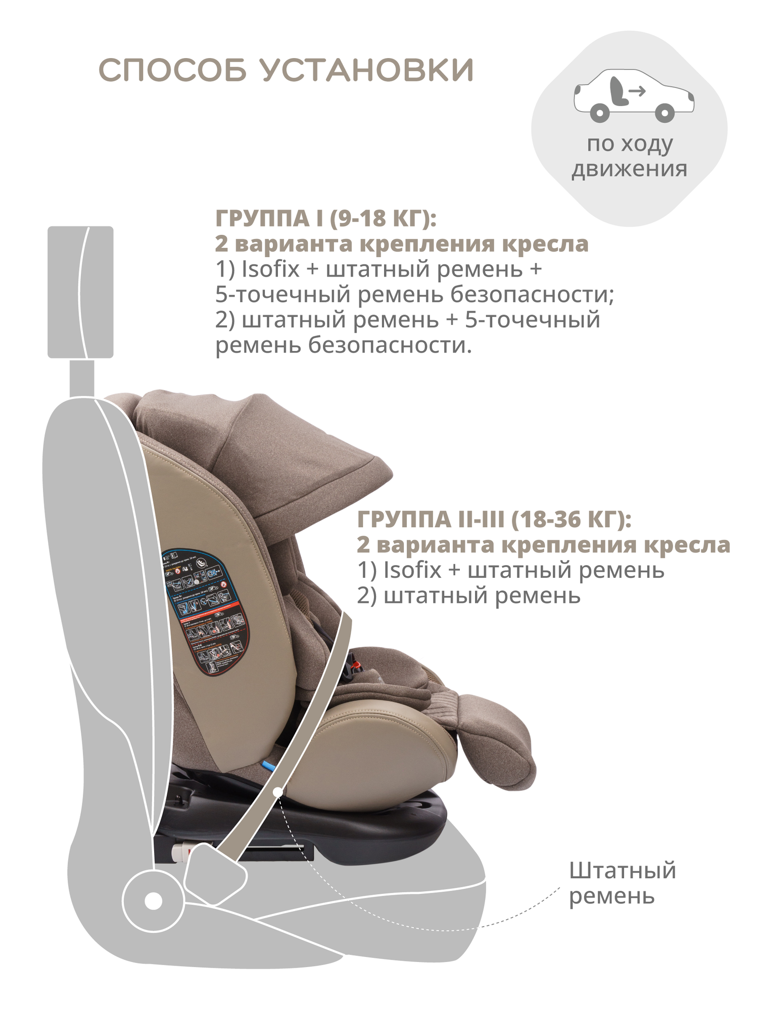 Купить Детское автокресло Jovola I-Travel Isofix растущее, группа 0/1/2/3 (до 36 кг), бежевый