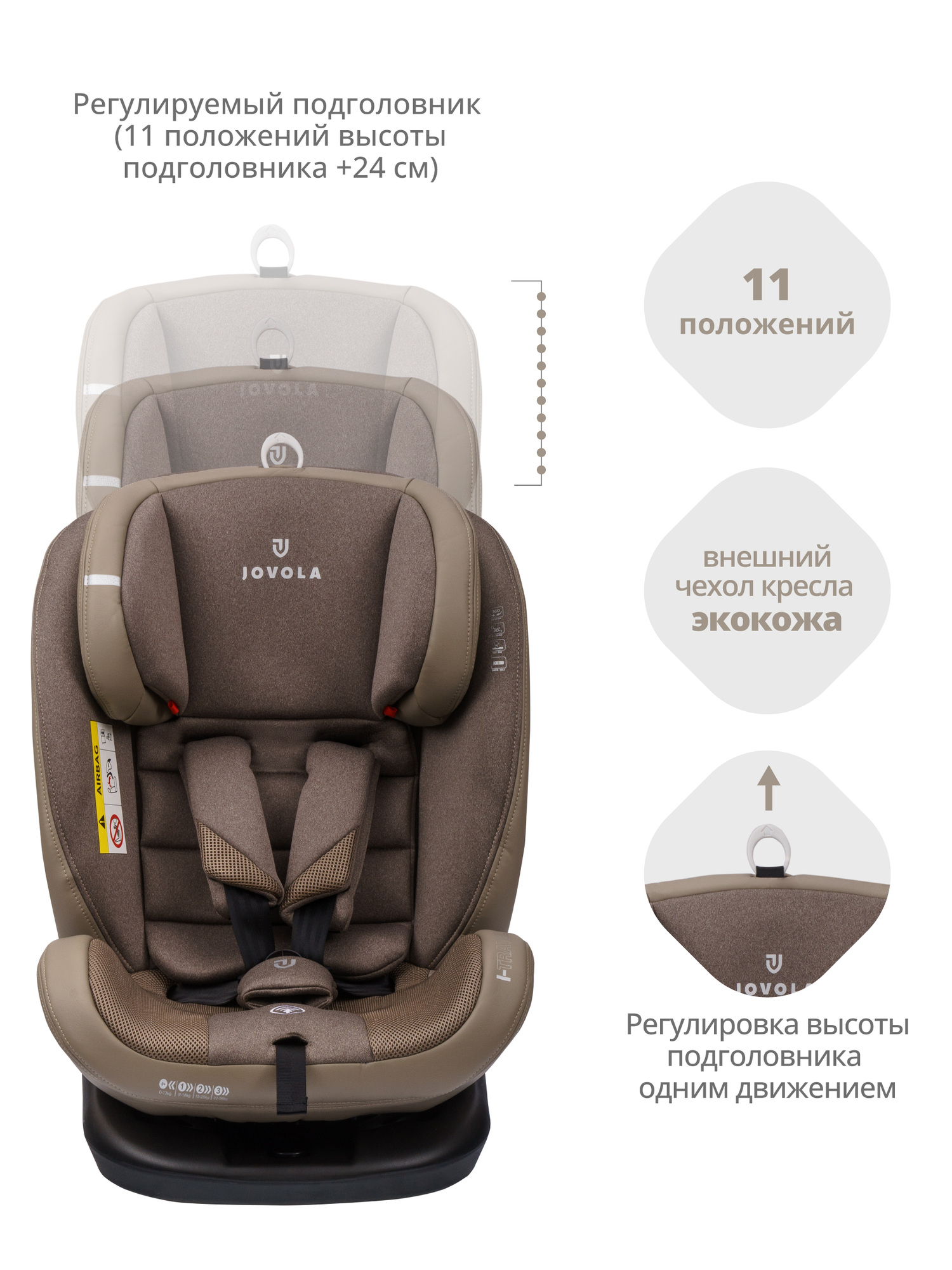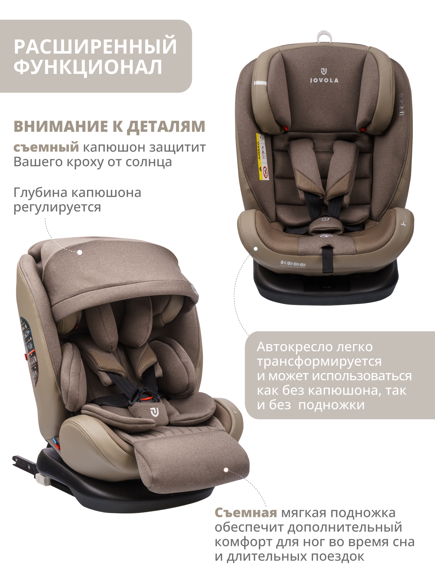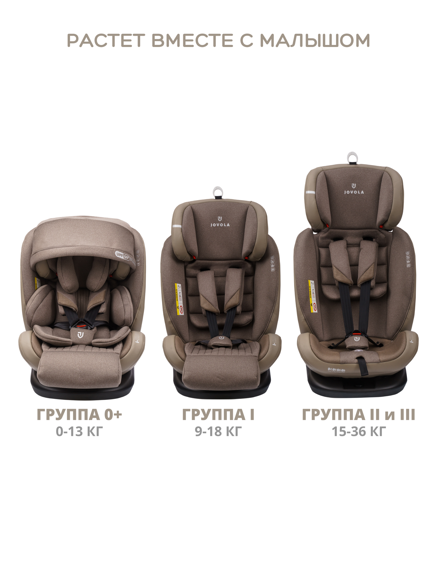 Автокресло Jovola I-Travel Isofix растущее, 0-36 кг, гр. 0,1,2,3, бежевый