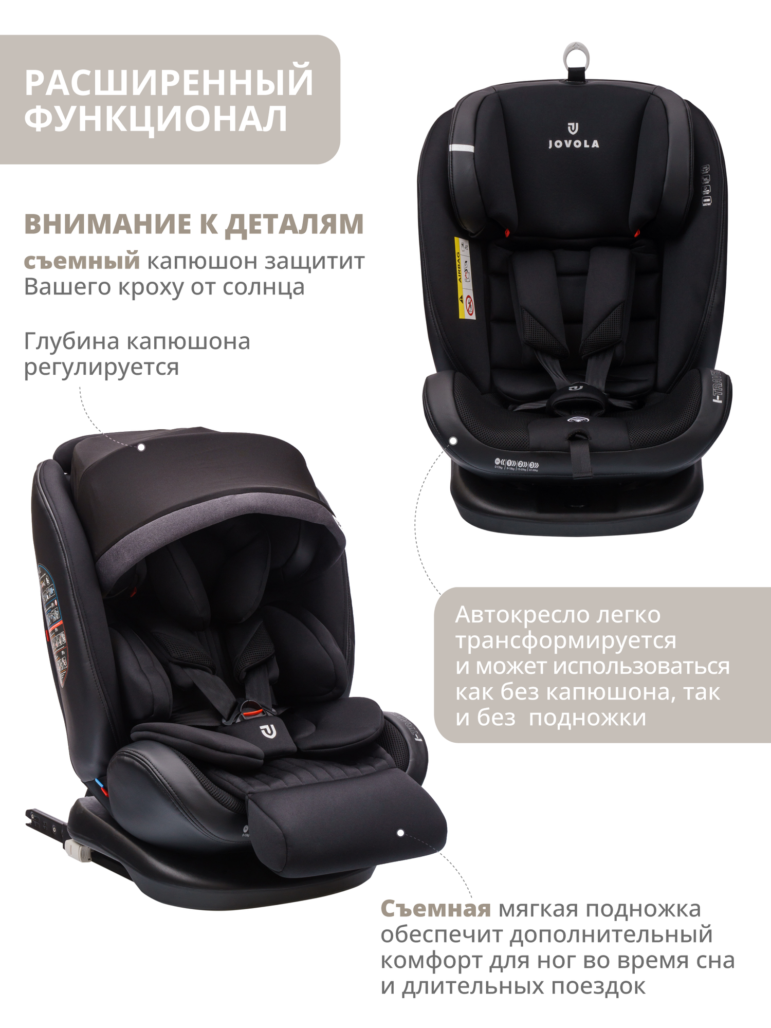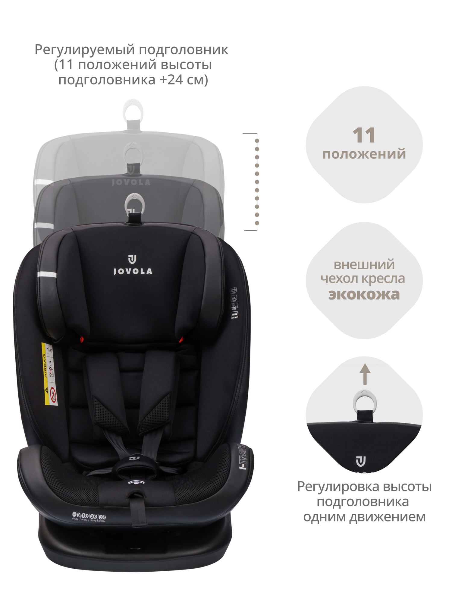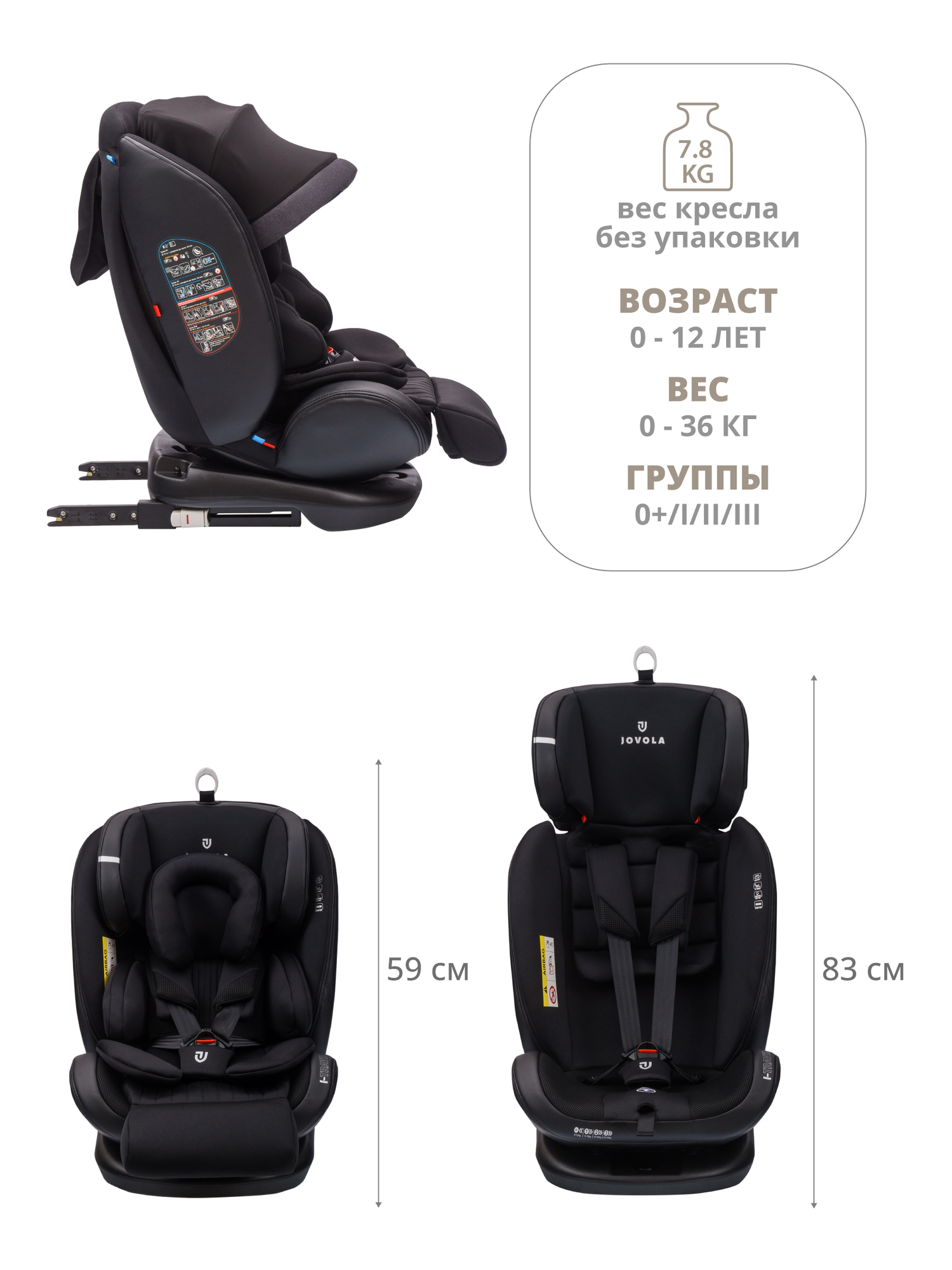 Автокресло Jovola I-Travel Isofix растущее, 0-36 кг, гр. 0,1,2,3, черный