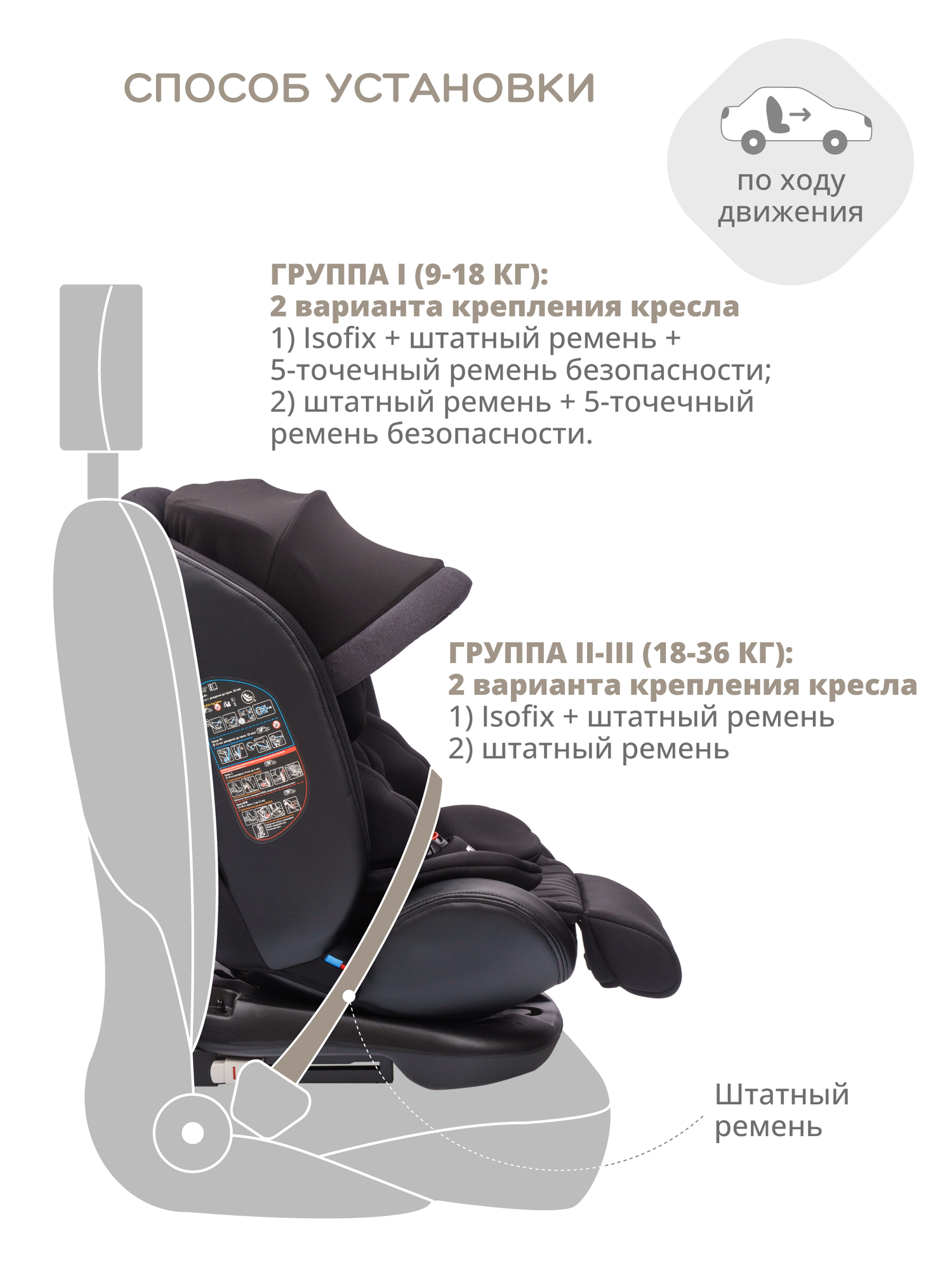 | Установка | спиной или лицом вперед |