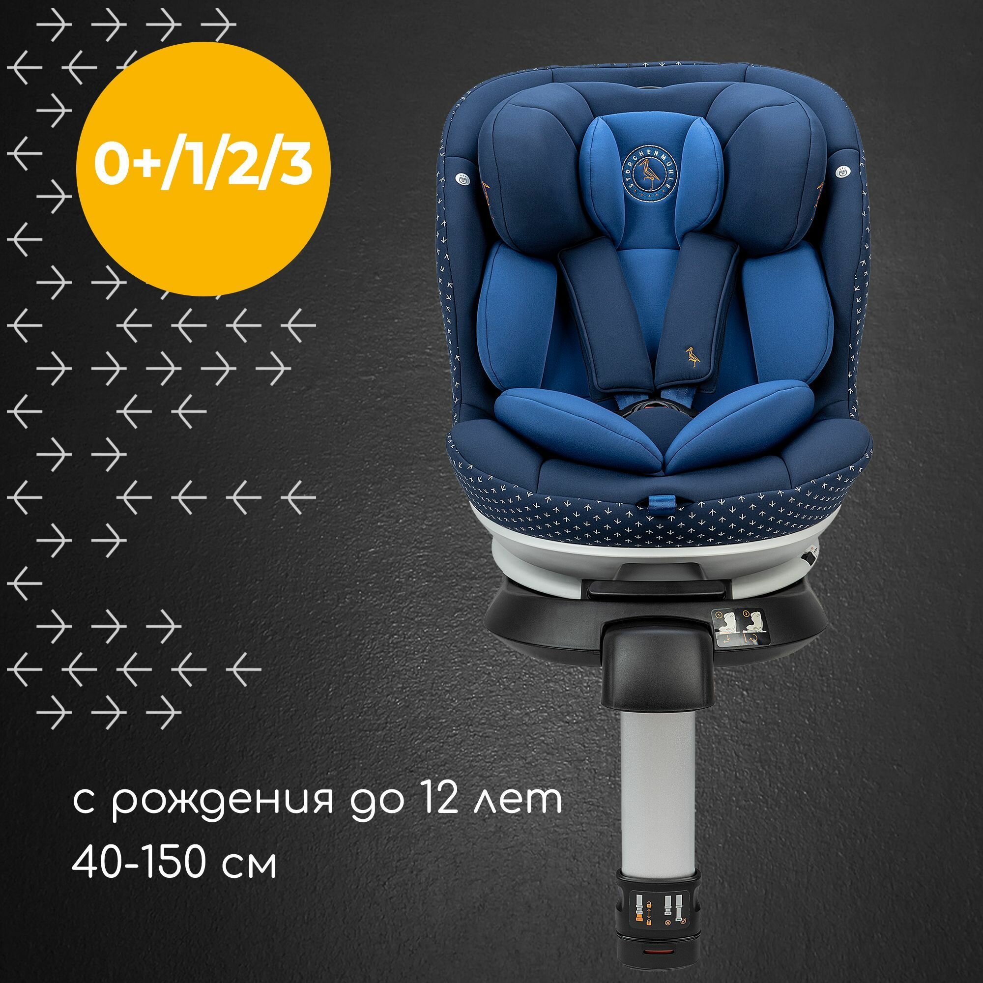 Купить Автокресло детское Storchenmuhle by Osann Niki Complete Iris, для новорожденных от 40 см и детей до 150 см (до 12 лет), c isofix и опорой, синий