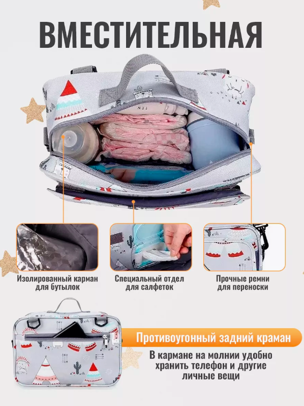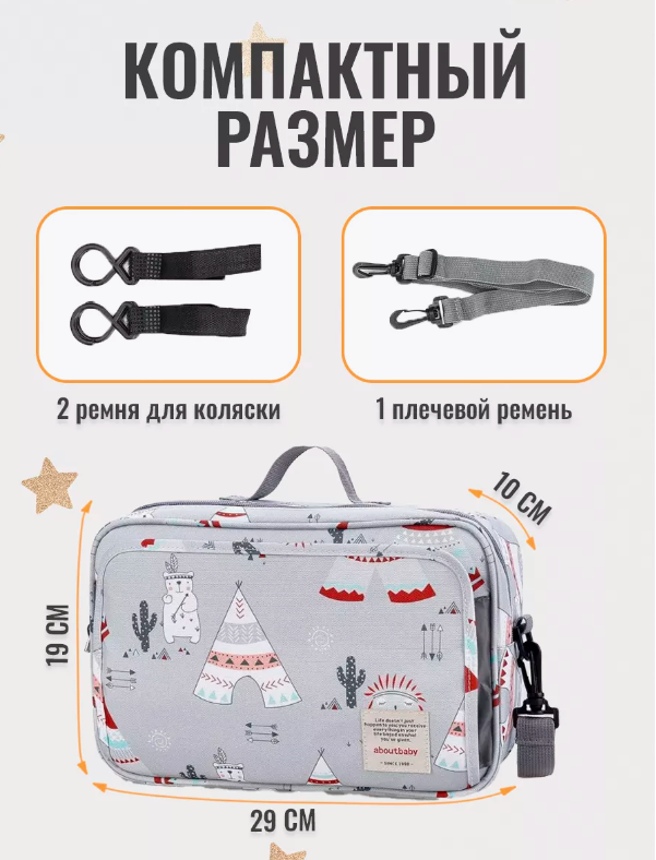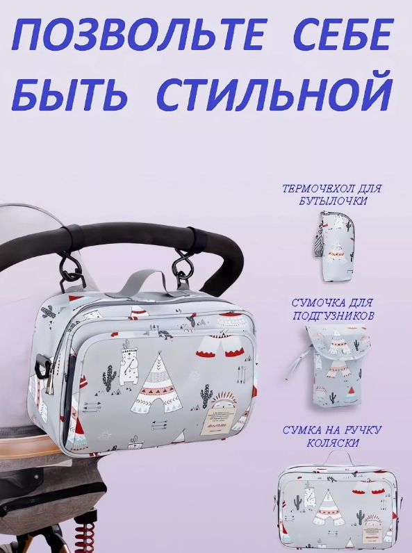 Сумка для коляски, водонепроницаемая, 3 отделения, серая интересное: