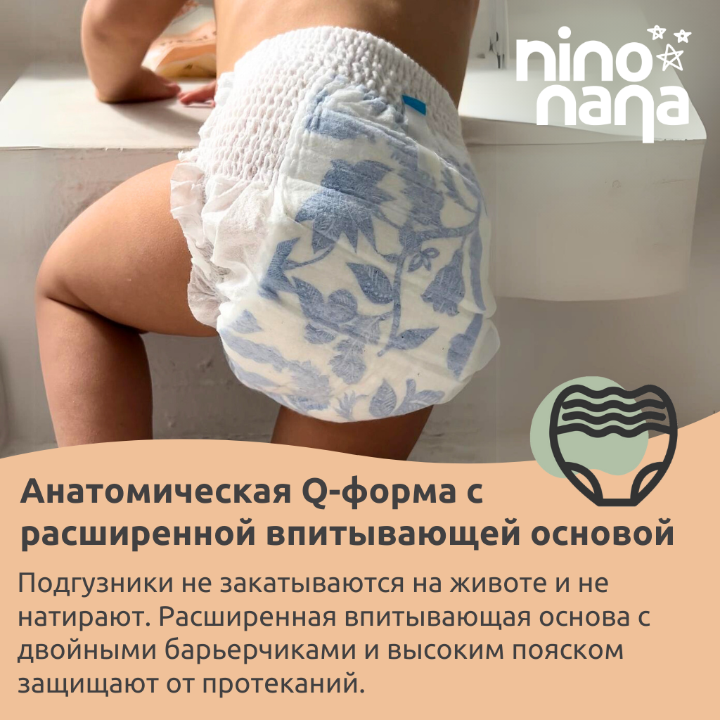 Подгузники-трусики детские Nino Nana L (9-14 кг), 4 размер. 38 штуки, расцветка Джунгли (Q-форма) интересное: