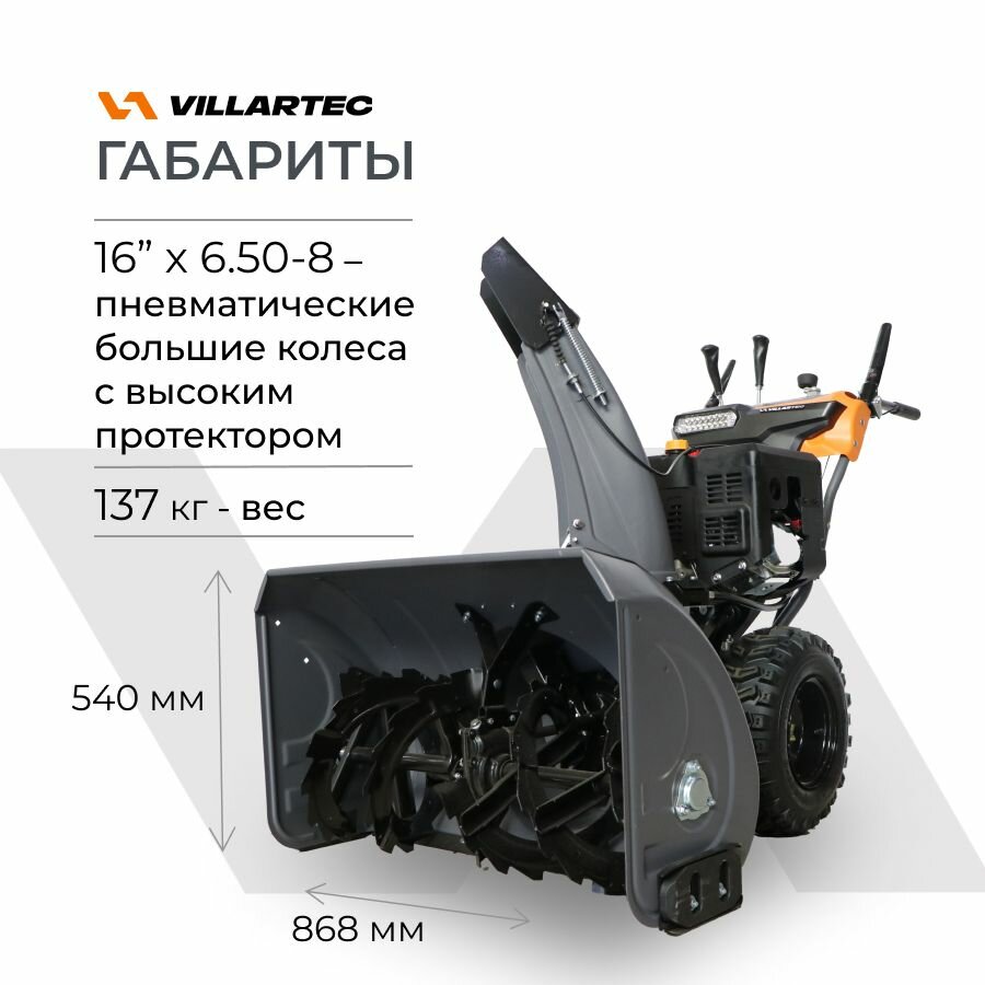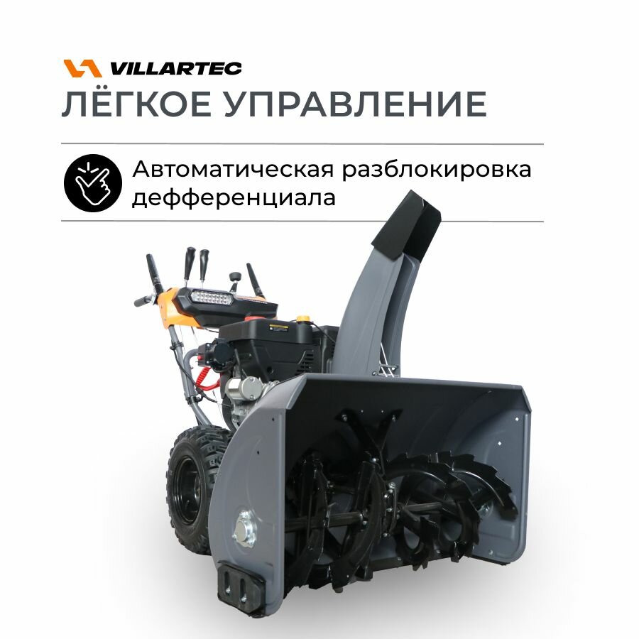 Снегоуборщик бензиновый самоходный с электростартером, подогревом ручек, светодиодной фарой и автоматическим дифференциалом VILLARTEC WB1510E 15 л. с.