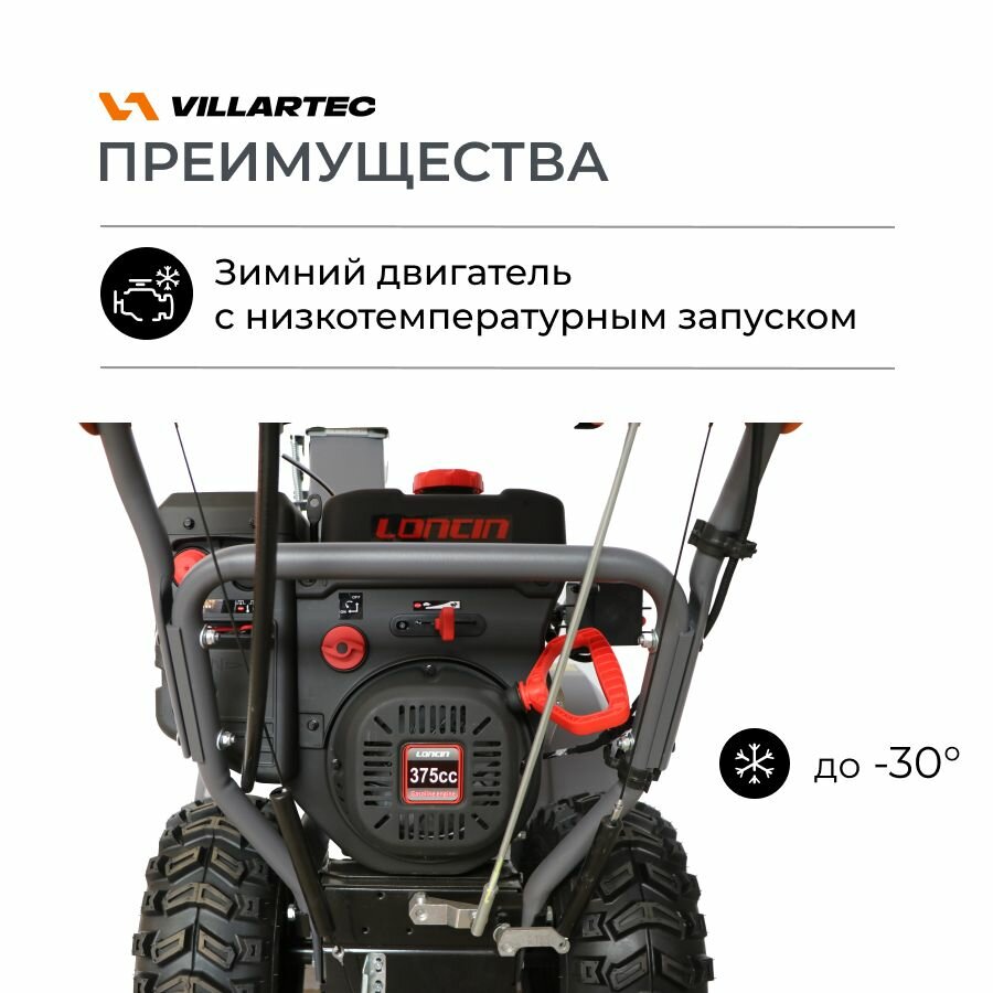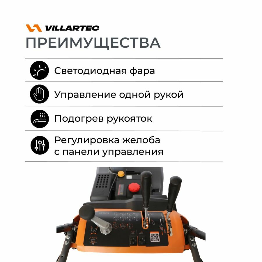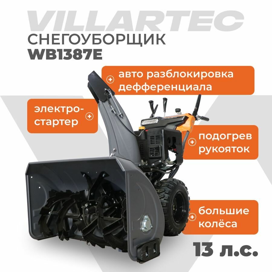 Купить Снегоуборщик бензиновый самоходный с электростартером, подогревом ручек, светодиодной фарой VILLARTEC WB1387E (DA) 13 л. с.