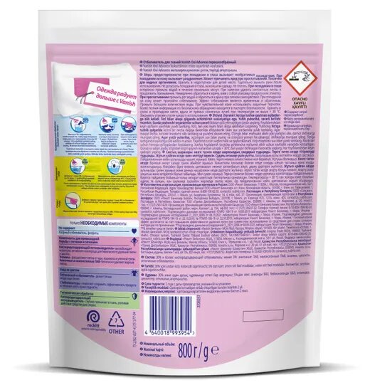 Ниже Вы можете прочитать отзывы на Отбеливатель для тканей Vanish Oxi Advance порошкообразный, 800 г, ознакомится с подробными характеристиками, посмотреть интересные обзоры и фотографии на Отбеливатель для тканей Vanish Oxi Advance порошкообразный, 800 г.