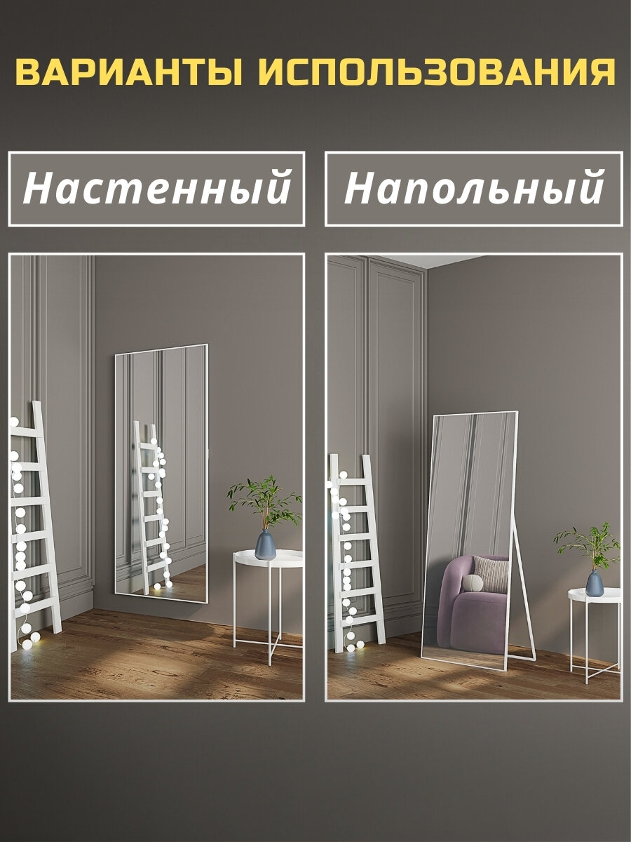 Зеркало стоячее на пол 160х50 см, для декора интерьера, Toda Alma