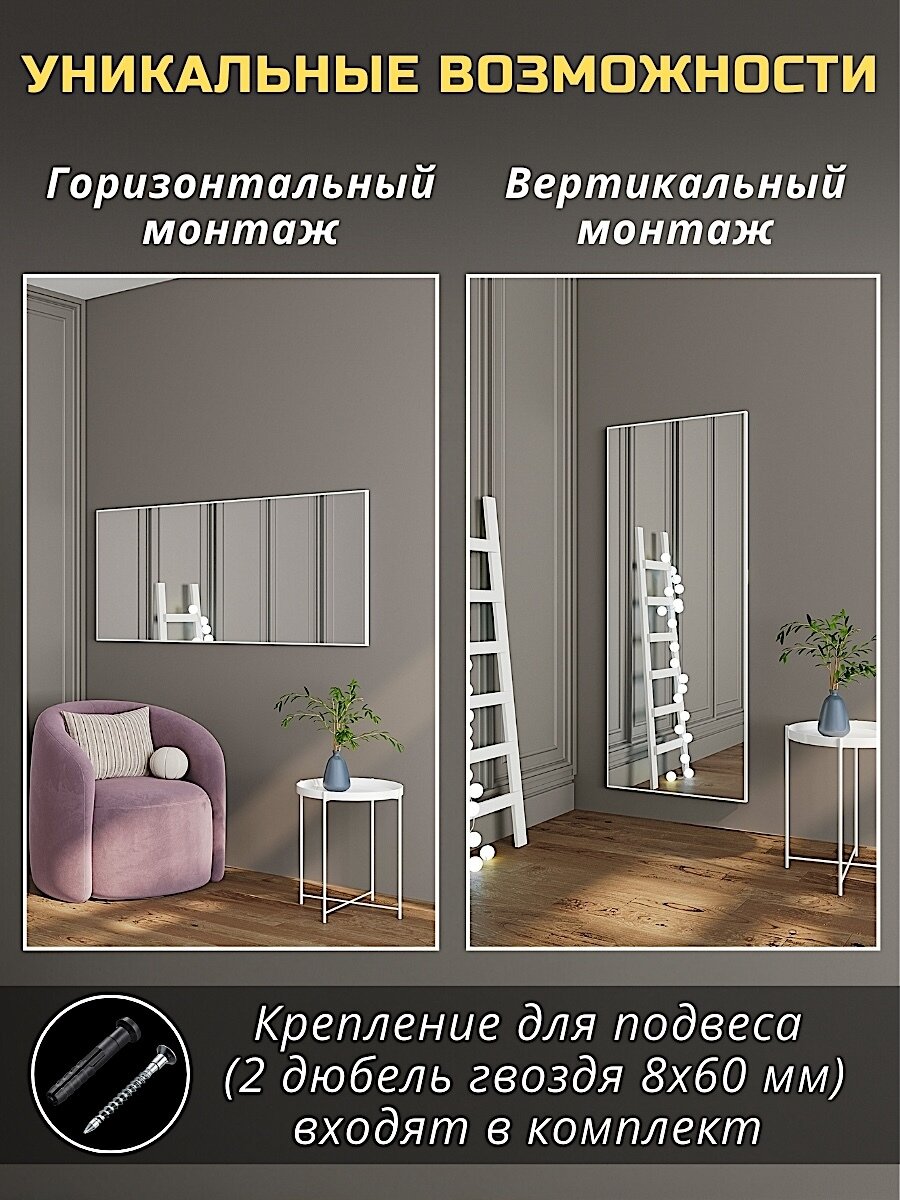 Зеркало настенное в полный рост 50х170 см цвет серебро, зеркало напольное во весь рост