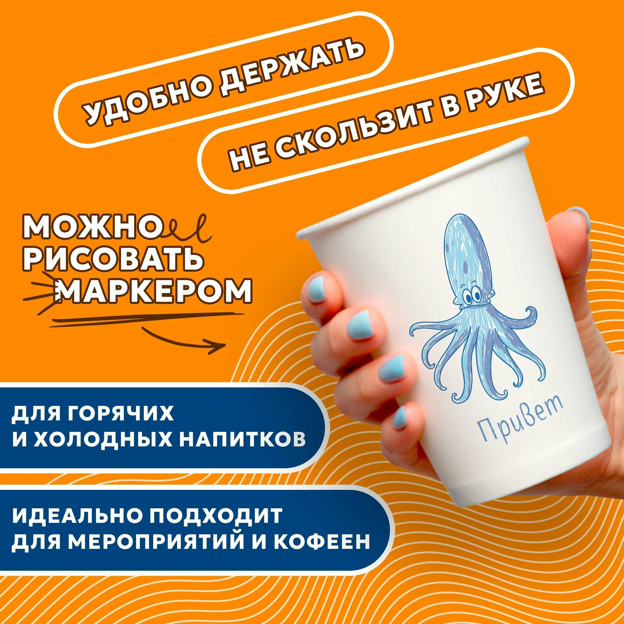 Набор одноразовых стаканов гриникс, объем 350 мл 50 шт. белые, бумажные, однослойные, для кофе, чая, холодных и горячих напитков